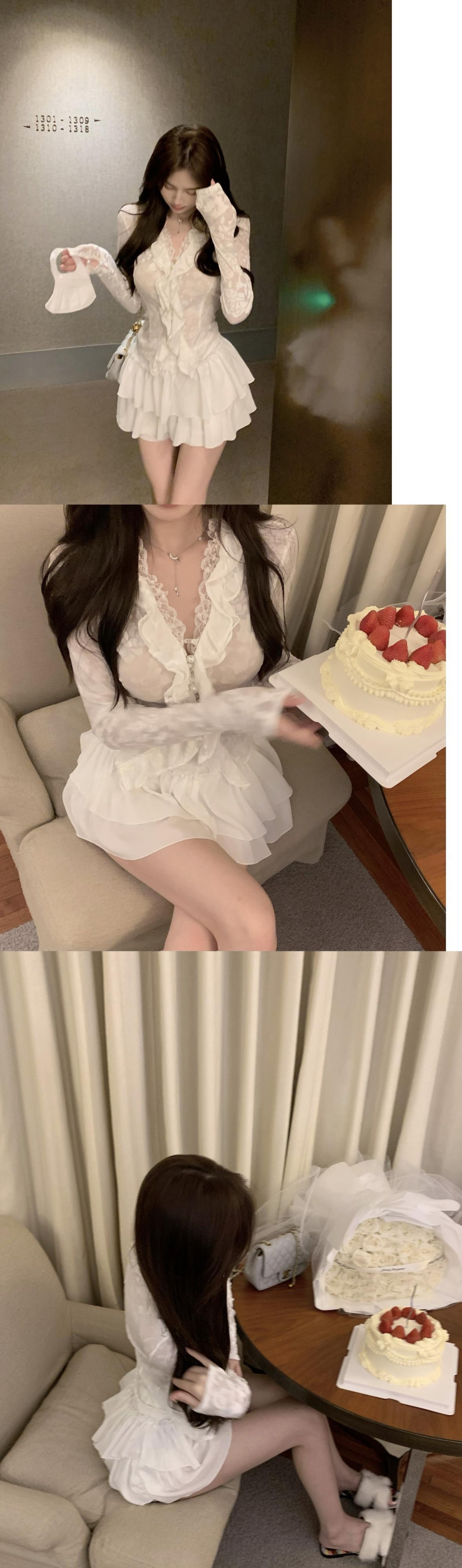スウィートレース長袖Vネックシャツレディース秋フリルシャツステッチ気質ショートスリムトップ ロング 大人ガーリー キュート カジュアル オータム 秋物 bstraw68244016295 | beaute25