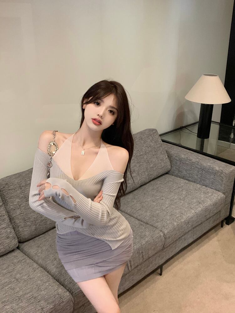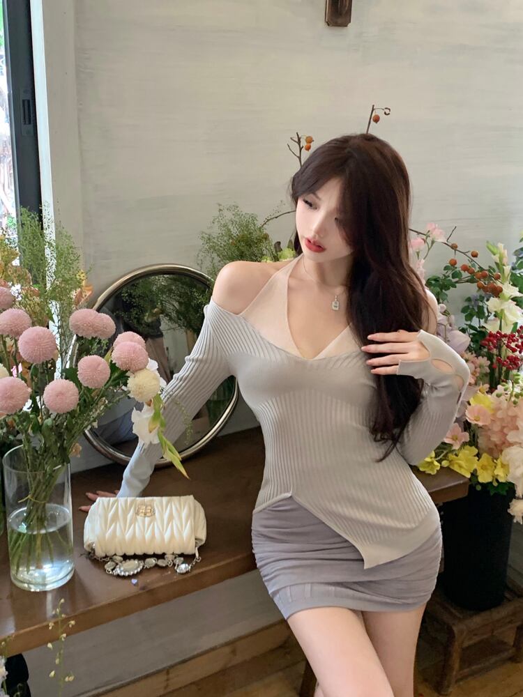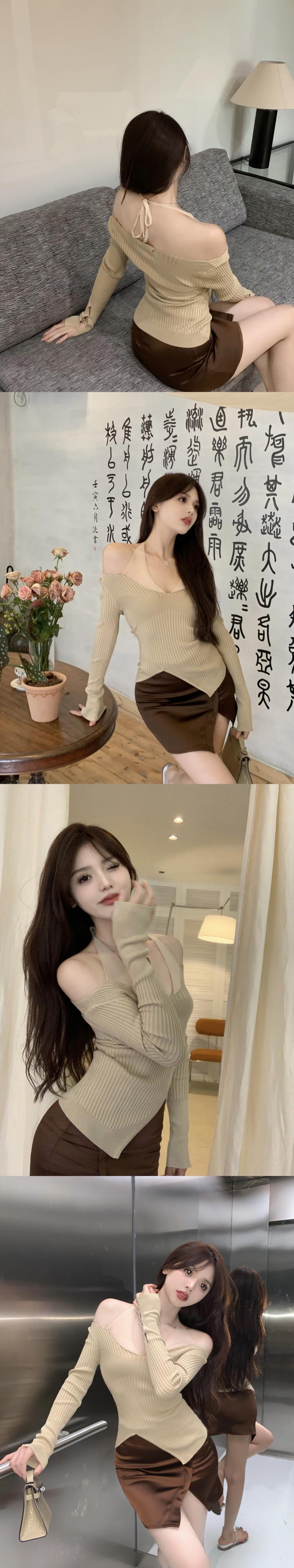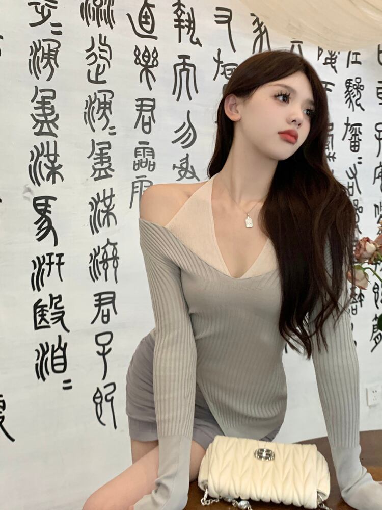 オフショルダー アイスシルク セーター レディース 初秋 Vネック セクシー スリム スリム 長袖 ボトムス シャツ トップス ロング オータム 秋物 bstraw65734249371 | beaute25
