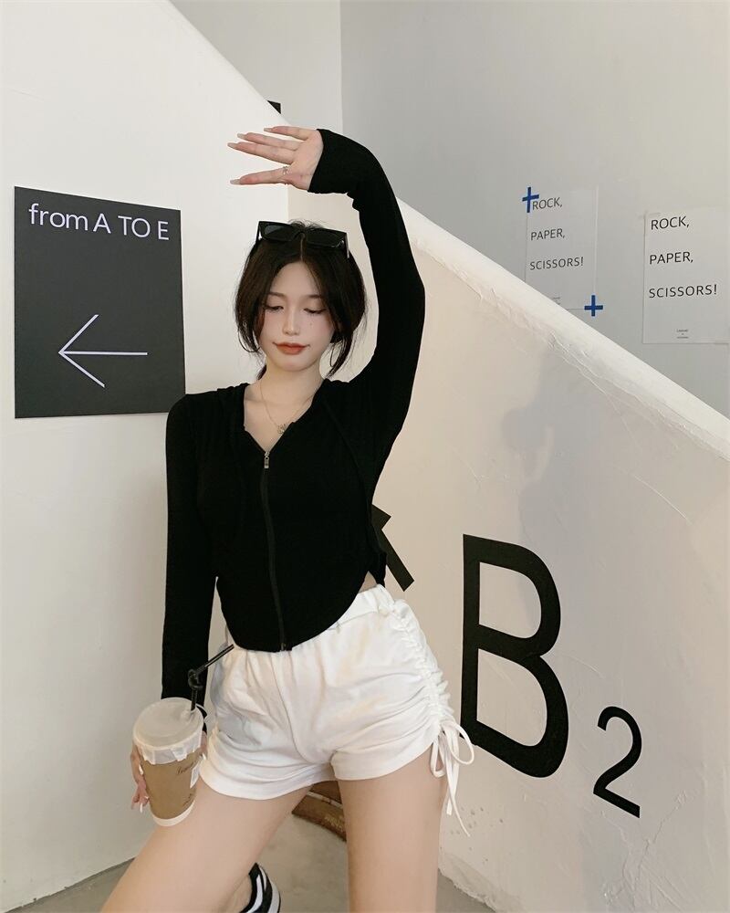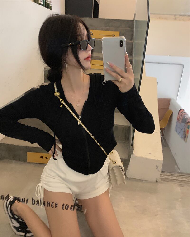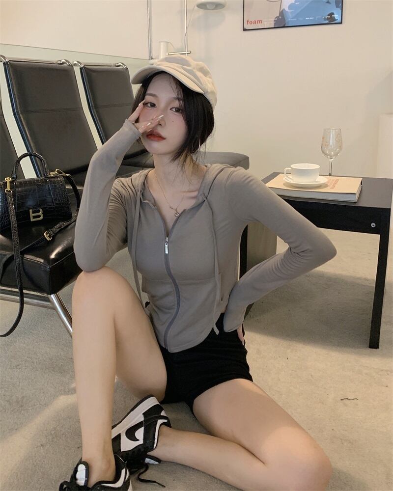 グレー ドローストリング フード付き 長袖 ジャケット レディース 2022年秋 スリム ショート 日焼け止め カーディガン アウター ロング bstraw79620703734 | beaute25
