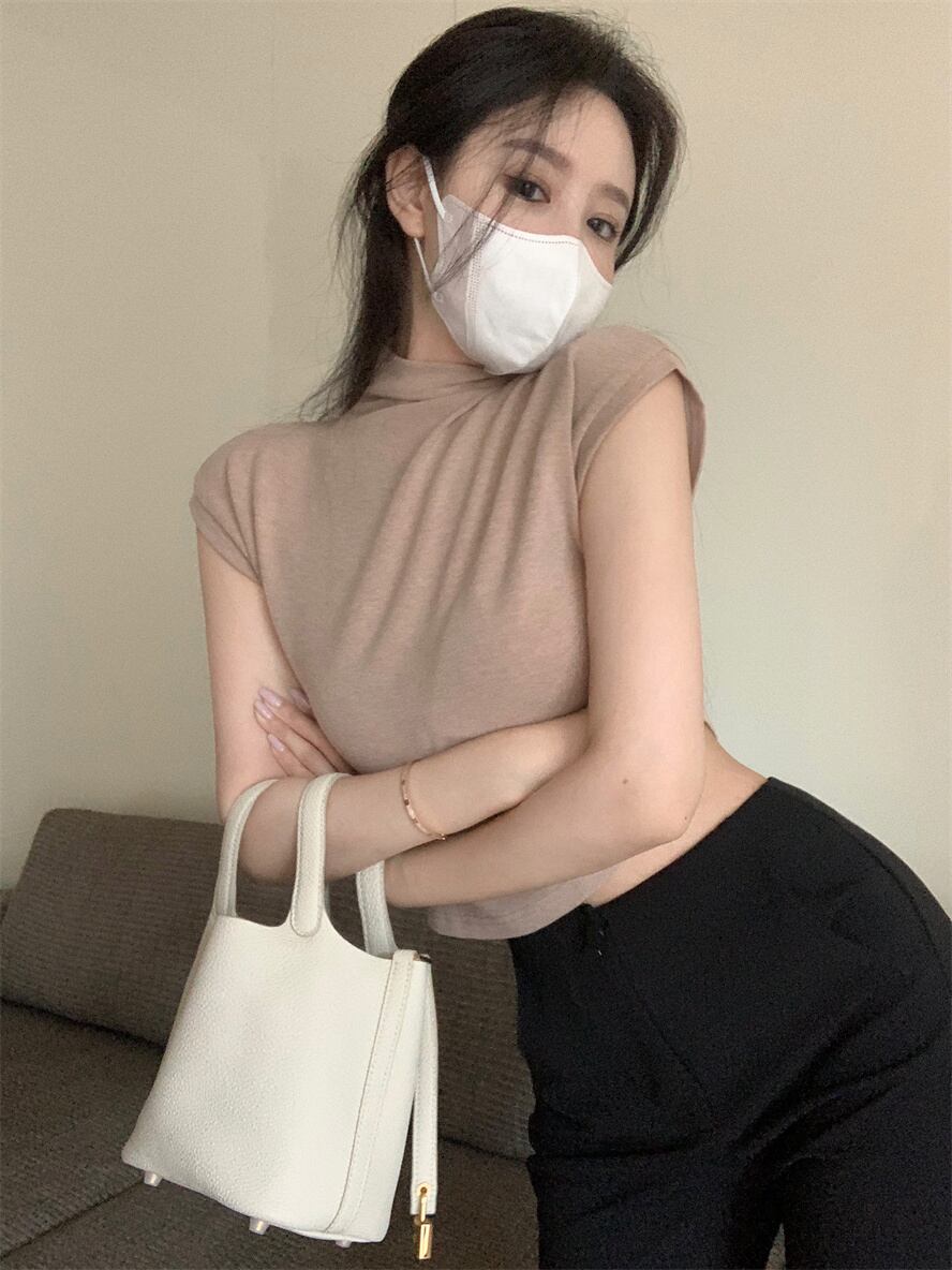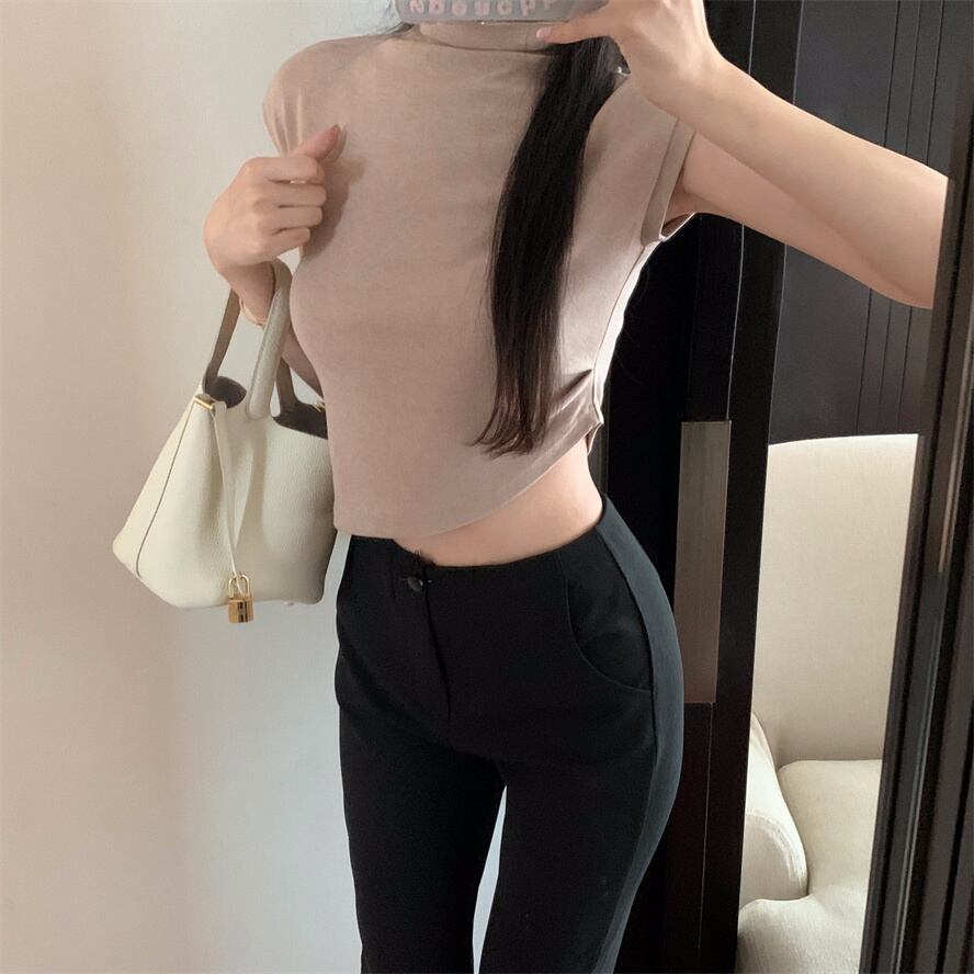 ハーフタートルネックTシャツ レディース 夏 デザインセンス ニッチ イレギュラー ピュアデザ ショート タイトフィット 薄手 半袖 トップス サマー 夏物 bstraw1762643563 | beaute25