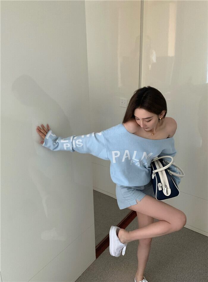 ワンショルダー ニット セーター レディース 秋 薄手 青 甘い系 ショート スリム スリム 長袖 ボトムス トップス ロング ブルー 大人ガーリー スウィート キュート カジュアル オータム 秋物 bstraw36897368289 | beaute25