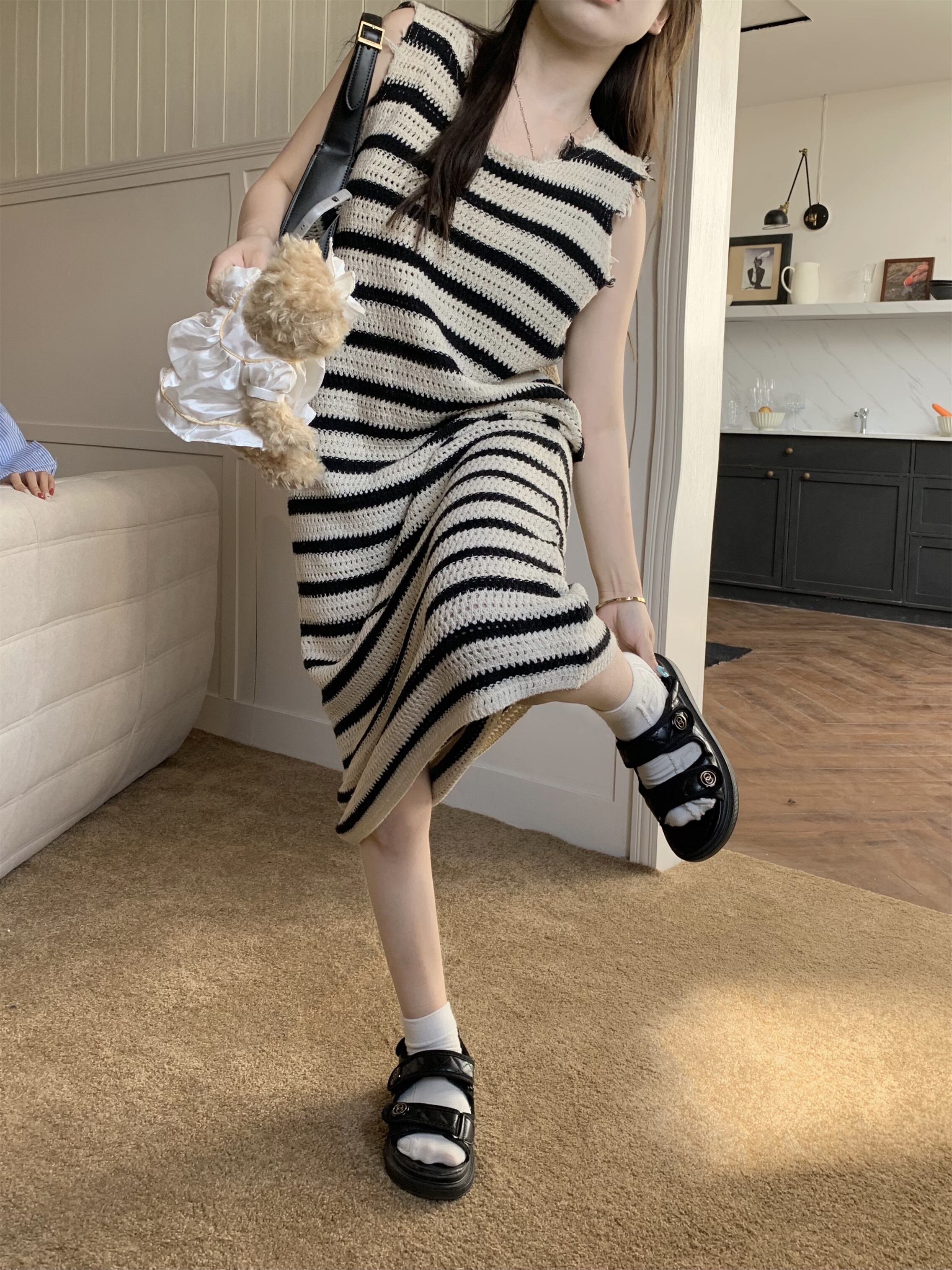 ホット ストライプ ベスト ドレス女性の夏のノースリーブ ルーズなデザイン中空ハイ ウエスト a ライン ミドル丈スカート ハイウェスト サマー 夏物 Aライン bstraw85091158608 | beaute25