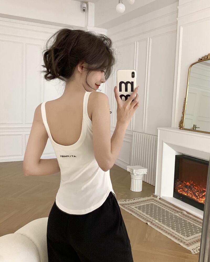 香港スタイルの美しい背中の綿のキャミソール小さなベストの女性の夏の白い背中の開いたセクシーなユニークなユニークなトップ アウターウェア ホワイト コットン サマー 夏物 bstraw11591328148 | beaute25