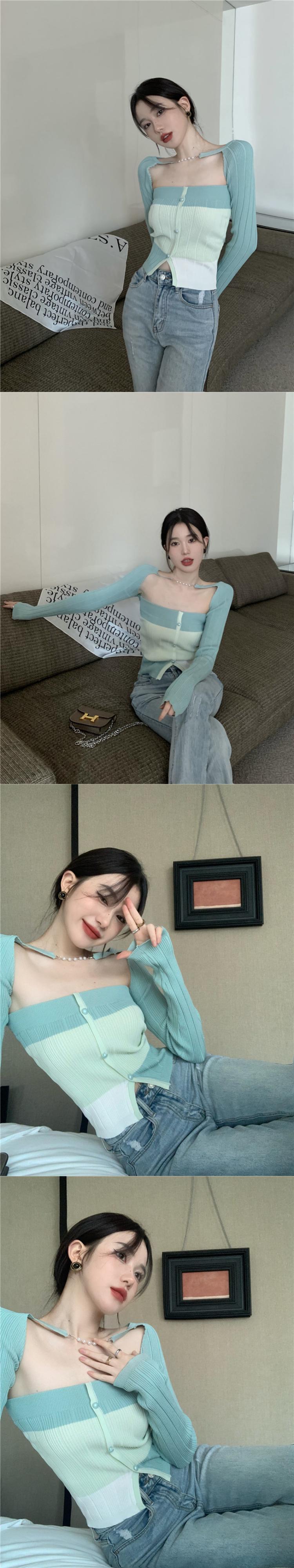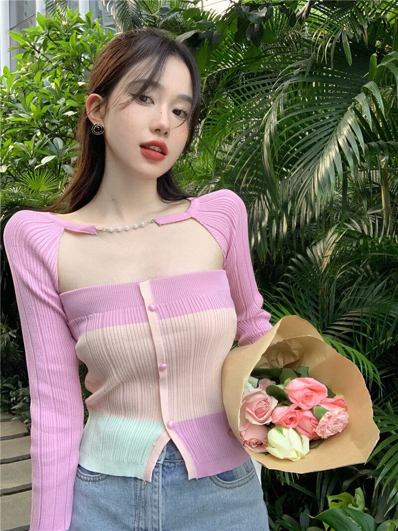 スイートベイビー ヒットカラー スリム 長袖 ニットセーター レディース 夏 純情風 ショートブラウス ベスト トップス 2点セット ロング 大人ガーリー スウィート キュート カジュアル サマー 夏物 ピュア bstraw48139009591 | beaute25