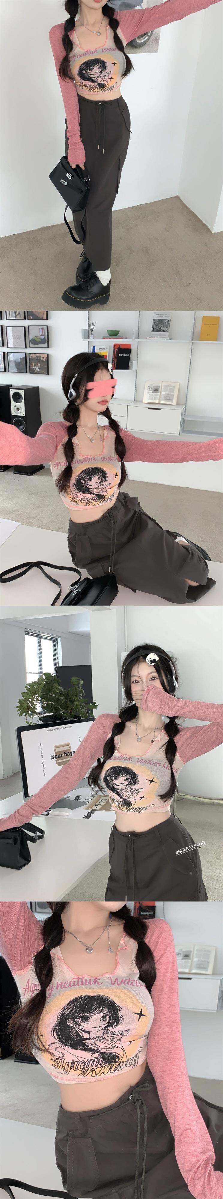 アメリカのレトロな長袖 Tシャツ女性の秋の純粋な欲望印刷セクシーなハイウエストクロップドへそタイトなショートトップ ハイウェスト ロング オータム 秋物 ピュア bstraw81925478145 | beaute25
