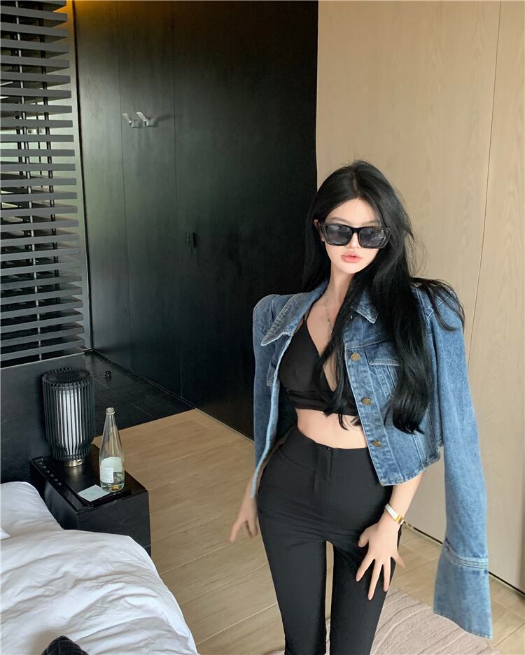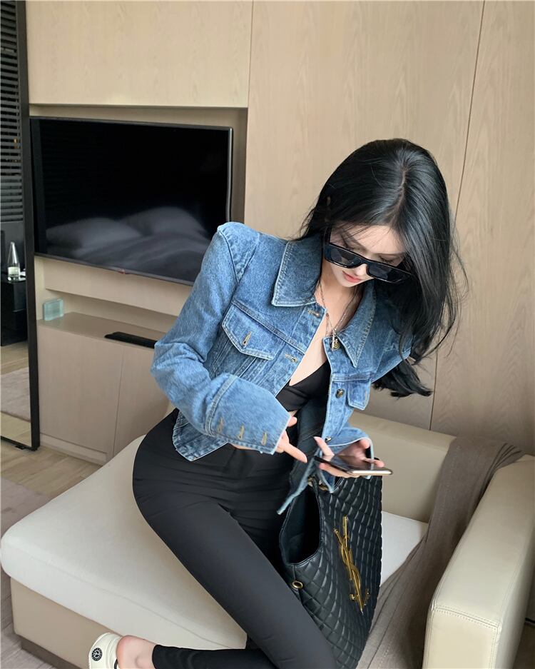 レトロな長袖デニム ジャケット女性の秋ポロ襟ルーズ イン トレンディなカーディガン デザイン ショート トップ ジャケット ロング オータム 秋物 bstraw94767137753 | beaute25
