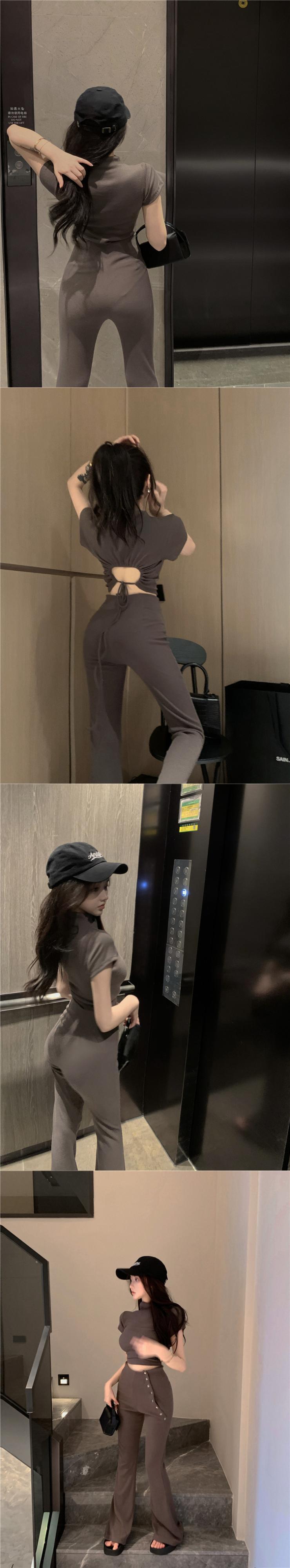 ホットバックレスレースアップ半袖 Tシャツ女性の夏のハーフタートルネック無地セクシーなショートスリム底入れシャツトップ サマー 夏物 ソリッドカラー bstraw41051852256 | beaute25