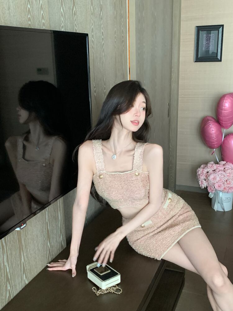 Xiaoxiang セレブスタイルのスーツの女性の夏の甘いセクシーな気質サスペンダートップバッグヒップスカート 2 点セット 大人ガーリー スウィート キュート カジュアル サマー 夏物 bstraw88573387177 | beaute25