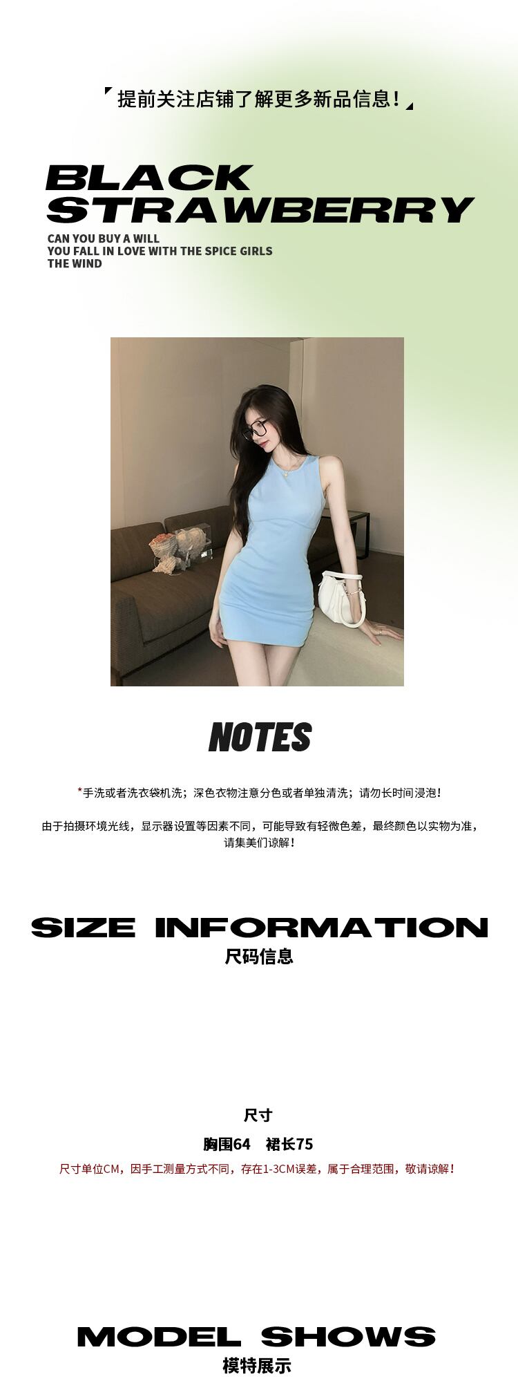 ブルー ノースリーブ ベスト ドレス フェアリー サマー 2022 新作 無地 スリム セクシー バッグ ヒップ ショート スカート 夏物 ソリッドカラー bstraw87960301965 | beaute25
