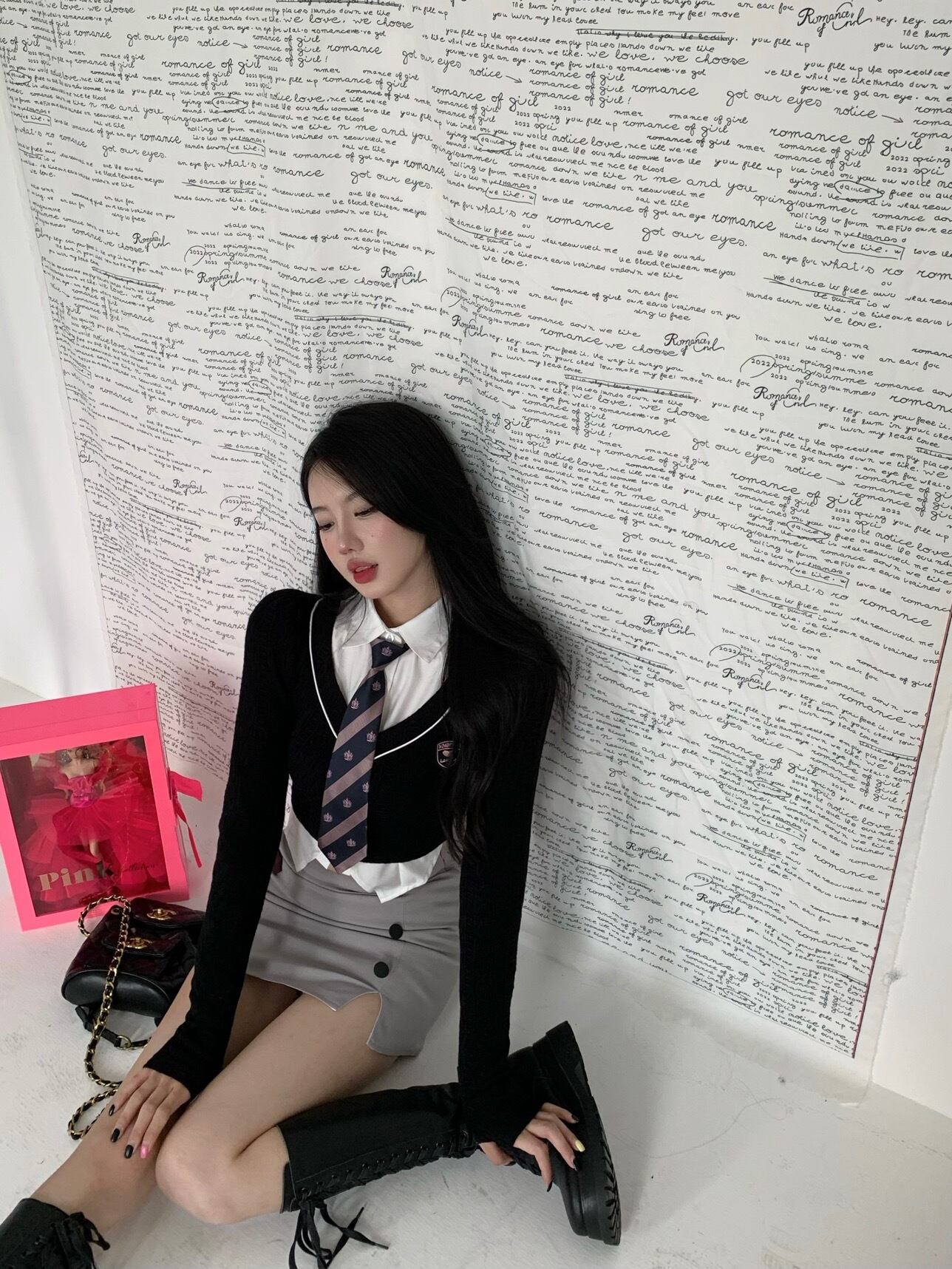 色:ブラックトップ,シャツ,スカート