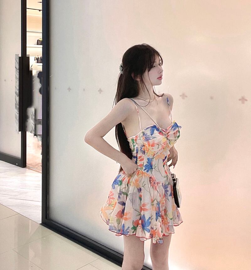甘いサスペンダー ドレス女性の夏の小さな花柄の気質ウエスト セクシーなショート スカート a ライン スカート 大人ガーリー スウィート キュート カジュアル サマー 夏物 Aライン bstraw3920323324 | beaute25