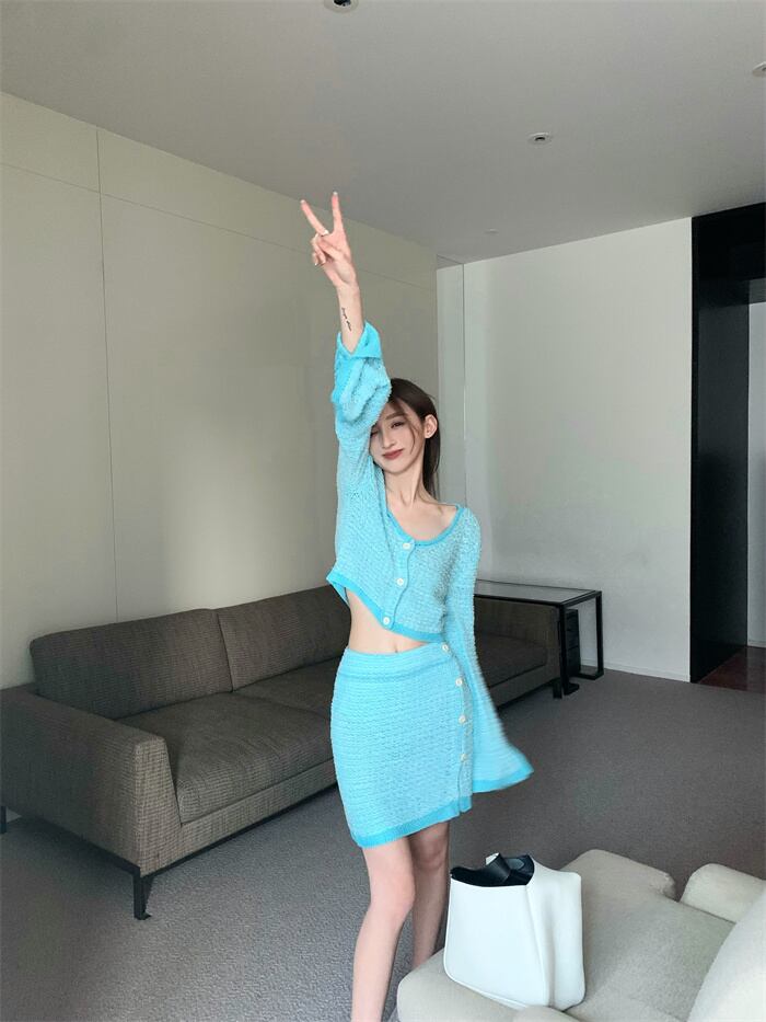 ブルースイートスーツ長袖ショートニットカーディガンレディース初秋のスプリットショートスカートパッケージヒップスカート2点セット ロング 大人ガーリー スウィート キュート カジュアル オータム 秋物 bstraw25777001184 | beaute25