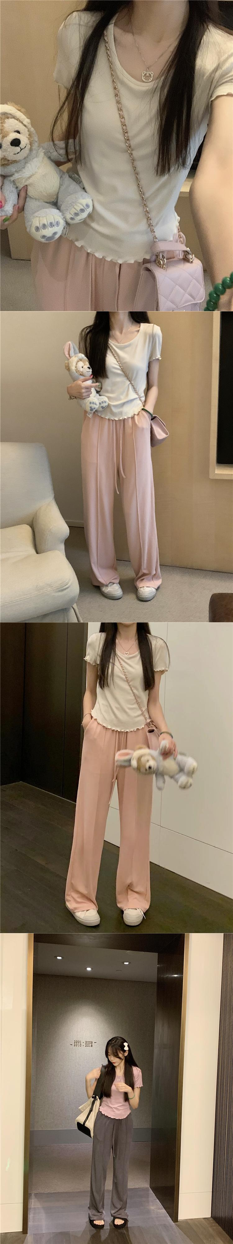 色:ベージュトップ,ブラックトップ,ピンクトップ,バイオレットトップ,黒いズボン,グレーパンツ,ピンクのパンツ