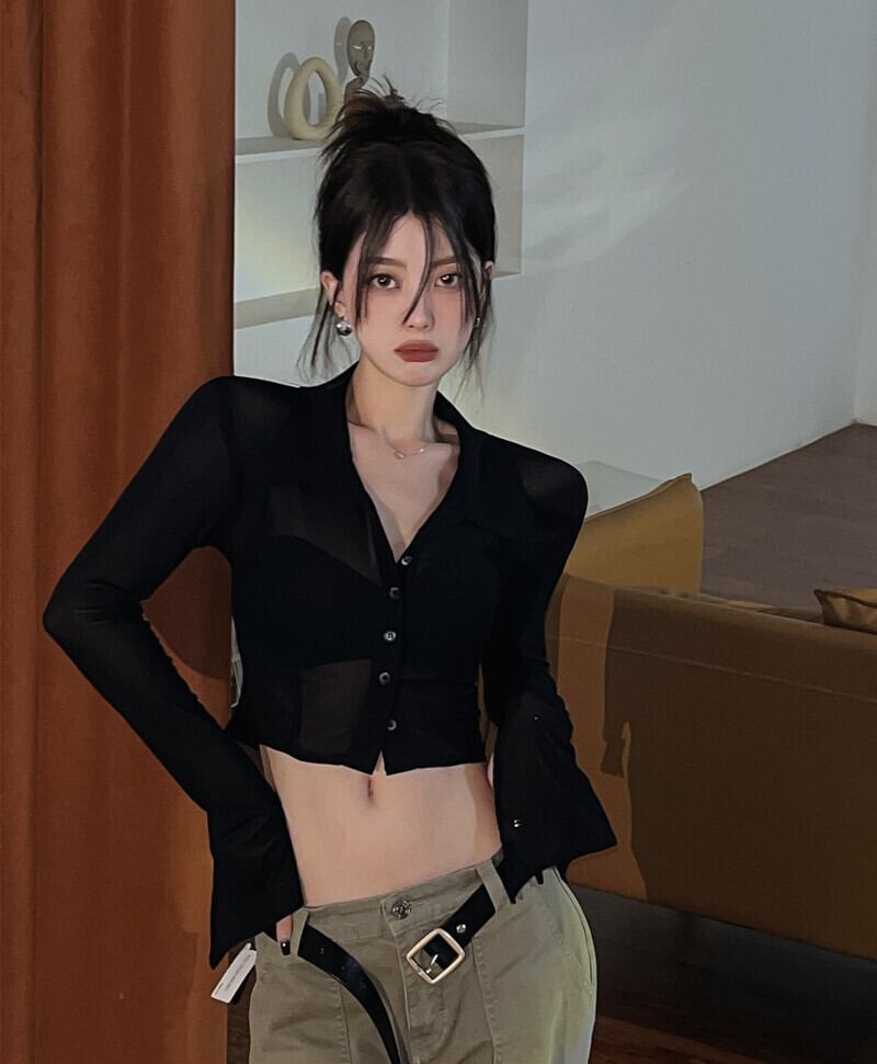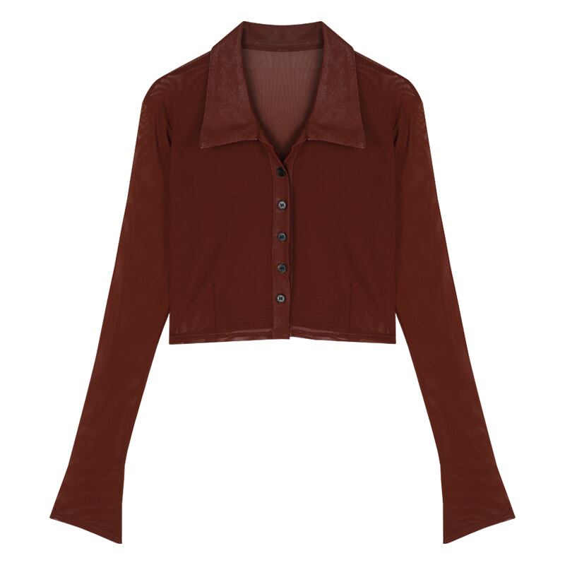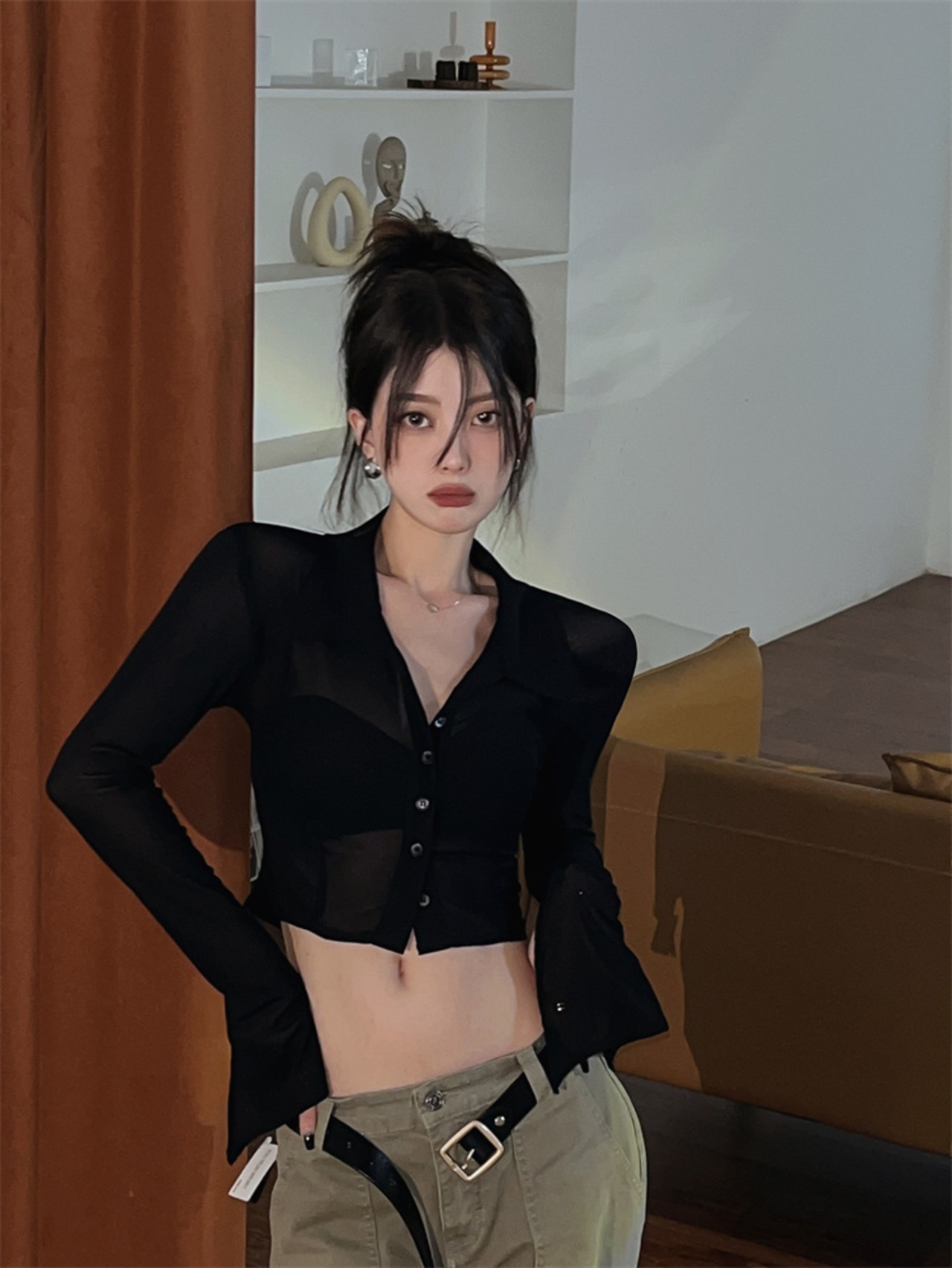 薄手シャツレディースデザインセンスニッチハイウエストショートメッシュシャツ2022年初秋新作長袖トップス ハイウェスト ロング オータム 秋物 bstraw56857726696 | beaute25