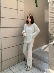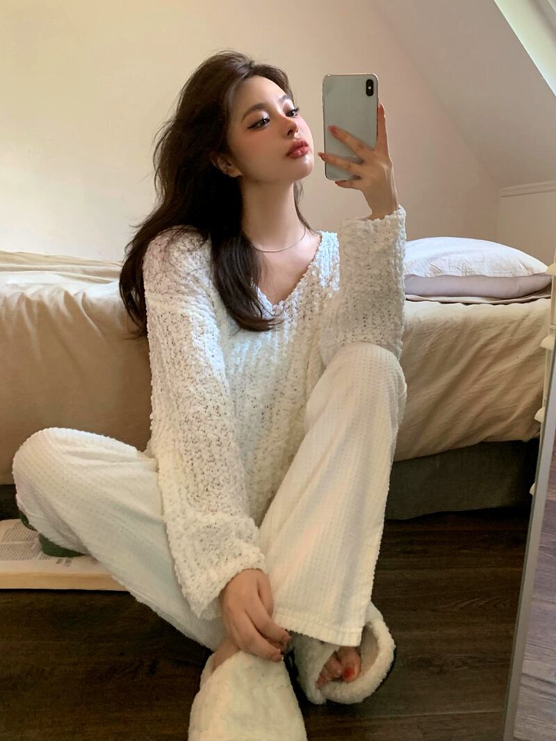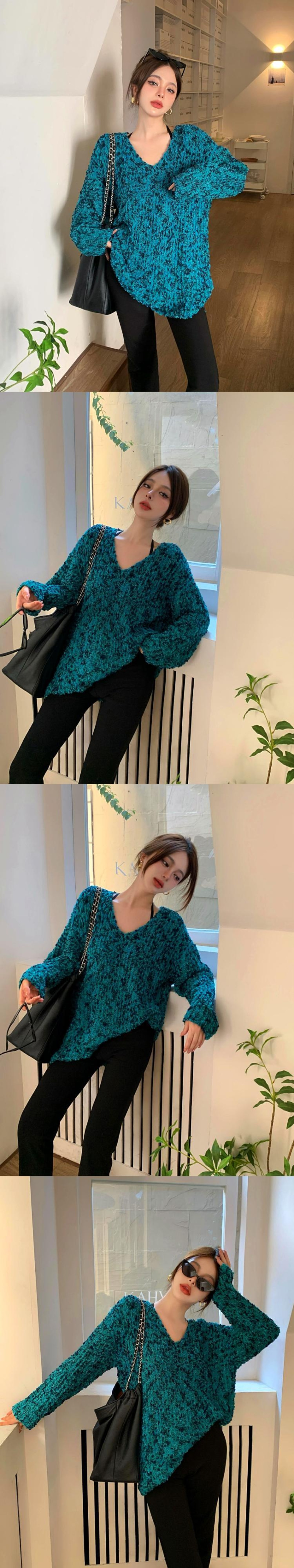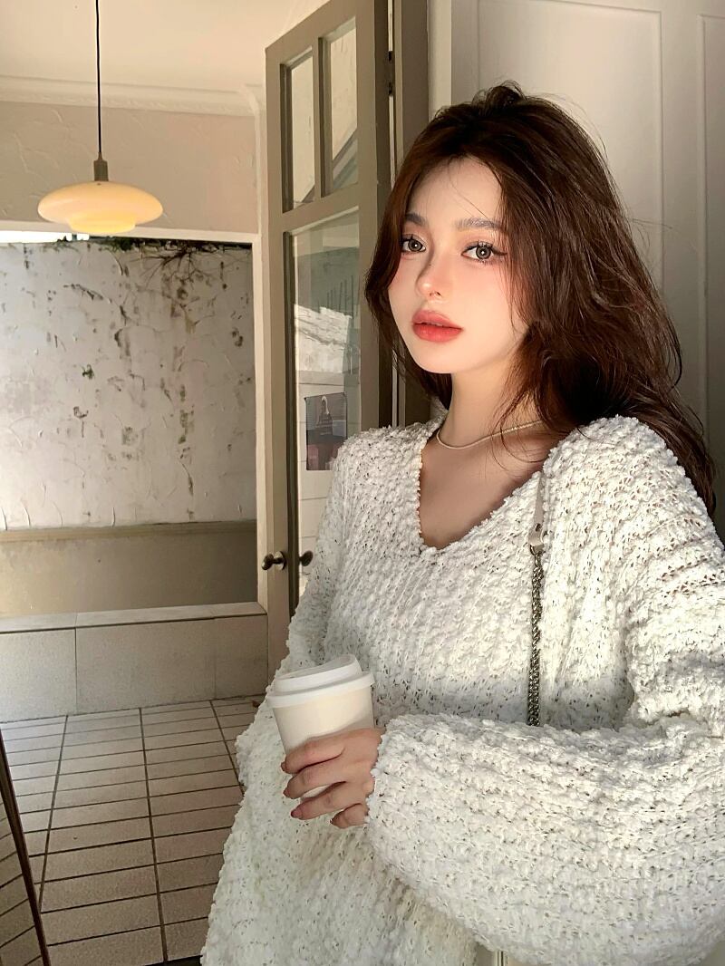 怠惰なスタイルの v ネックの長袖のセーターの女性の秋ソフト ワックスのようなルーズなデザイン小中長セーター コート ロング オータム 秋物 Vネック bstraw11785278347 | beaute25