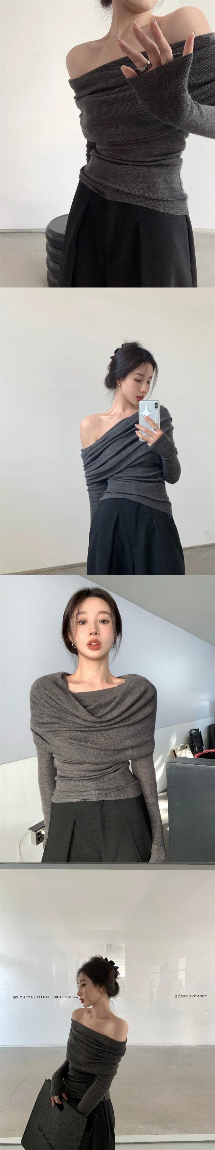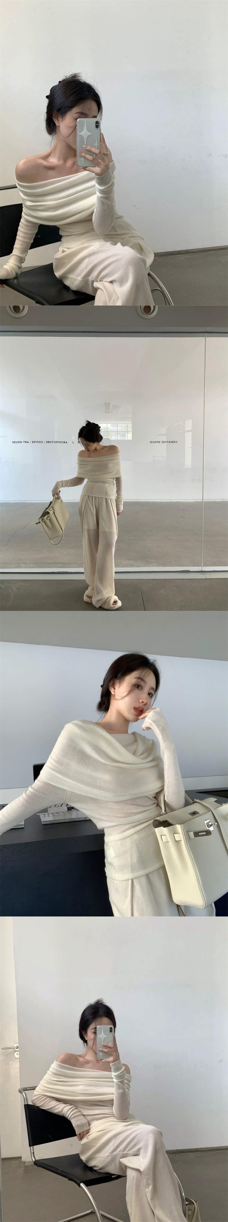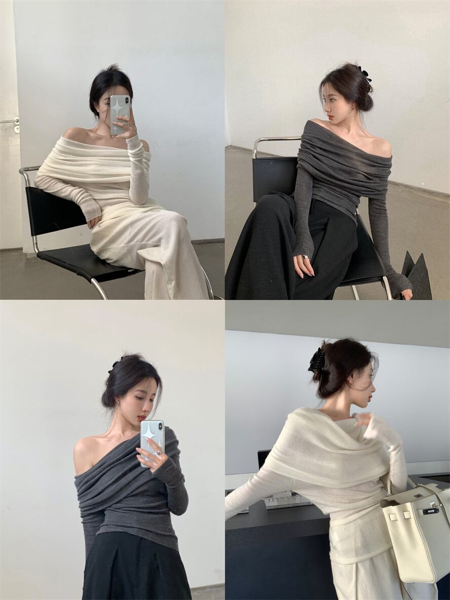 フランスのワンショルダー長袖ニットボトムシャツ女性の春の優しい純粋な欲望の風白スリムフィットと薄いプルオーバートップ ロング ホワイト スプリング 春物 ピュア bstraw84128340690 | beaute25