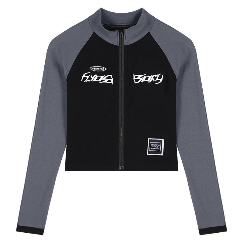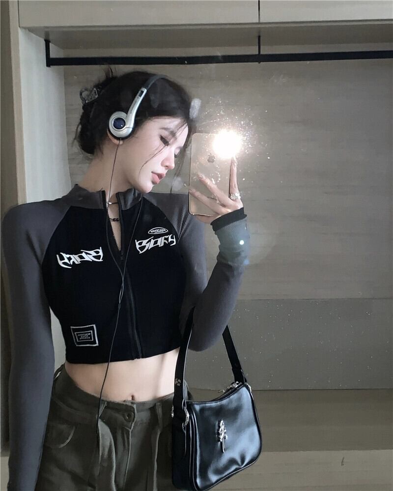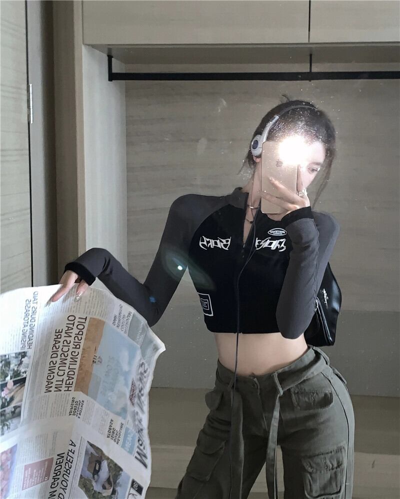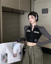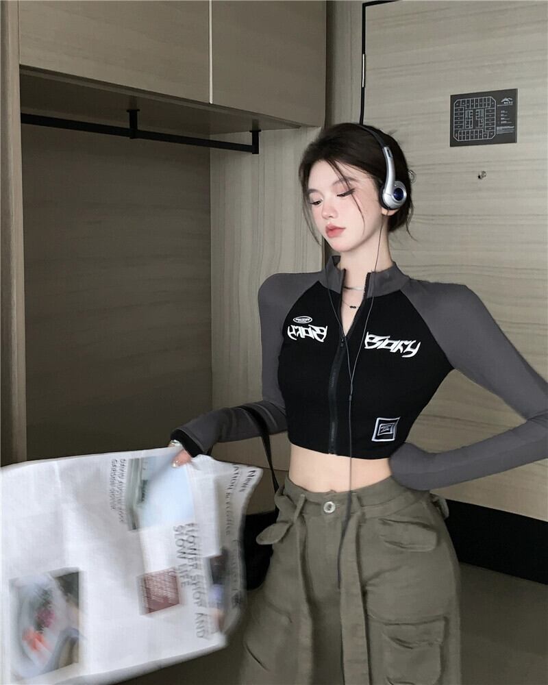 ヨーロッパとアメリカの Tシャツの女性のイン潮春の短い段落コントラストカラーのジッパーの気質タイトで薄い長袖ボトムシャツトップ ショート ロング スプリング 春物 ヨーロピアン bstraw87729180851 | beaute25