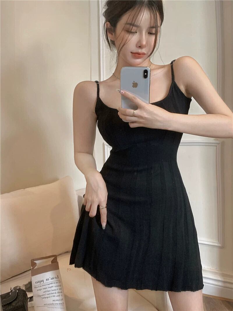 黒のワンショルダー サスペンダー ドレス レディース 夏のセクシーなニット ショート スカート ウエスト痩身 A ライン スカート ブラック サマー 夏物 Aライン bstraw53770927005 | beaute25