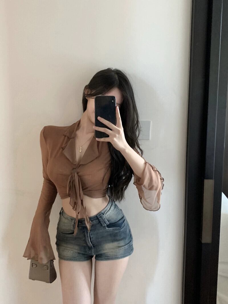 フレンチ スイート ベイブ タイアップ 長袖シャツ レディース 夏 ショートウエスト 薄肉 日焼け防止デザイン ニッチトップ ロング 大人ガーリー スウィート キュート カジュアル サマー 夏物 bstraw89793743387 | beaute25