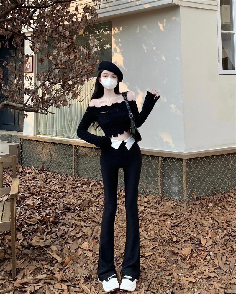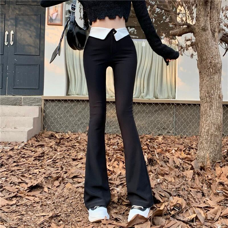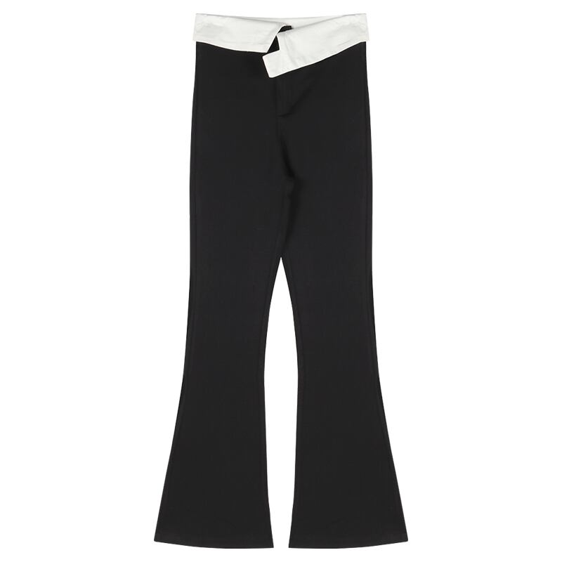 黒ハイウエスト馬蹄カジュアルパンツ女性の夏 2023 新しい小男カラーマッチング小さな足マイクロフレアパンツズボン レッド ブラック サマー 夏物 bstraw69328219736 | beaute25