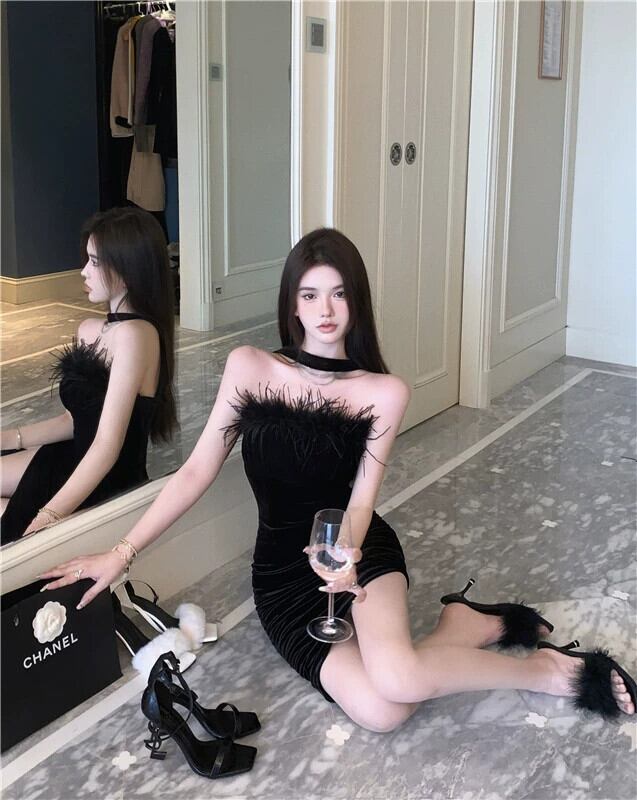 ブラックベルベットワンショルダーチューブトップドレス女性の夏のホルターネック不規則なホルターネックタイトセクシーなパッケージヒップスカート サマー 夏物 bstraw39599573381 | beaute25