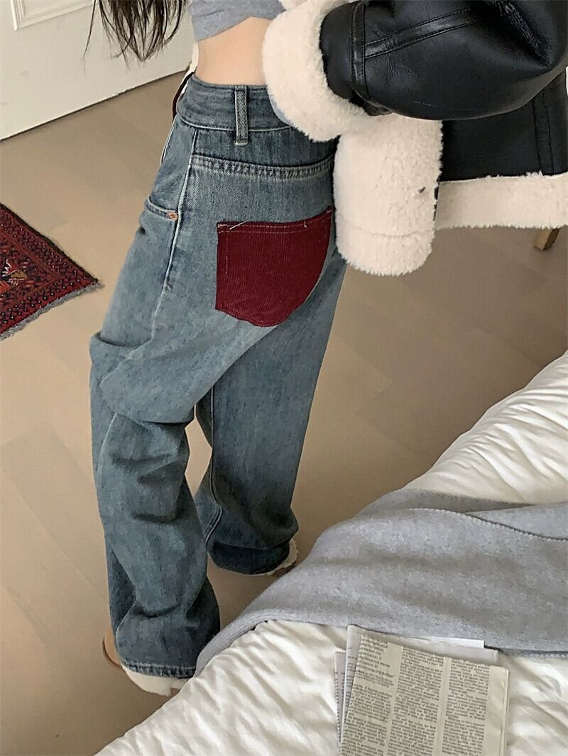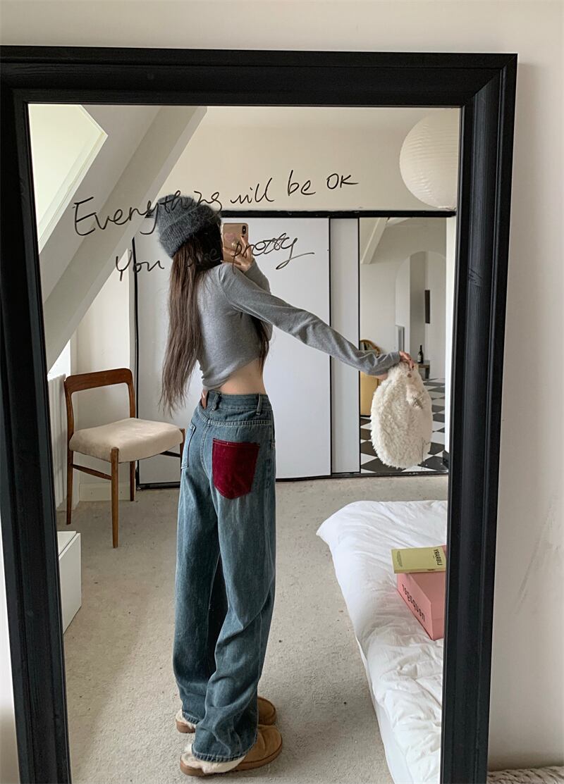 バージョンのレトロジーンズ女性の春と秋のオールマッチ古いハイウエストルーズスモールストレートワイドレッグパンツズボン ハイウェスト スプリング 春物 オータム 秋物 ワイドパンツ bstraw55576982974 | beaute25
