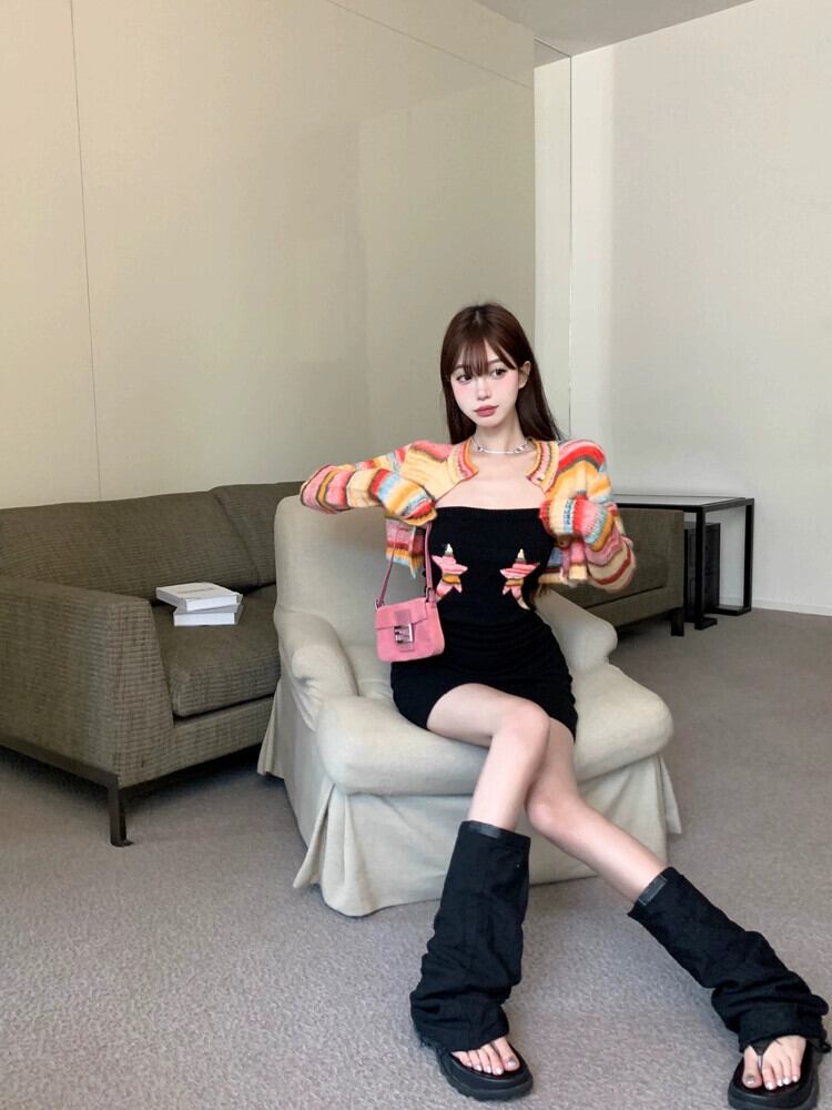 スパイスガール レインボーストライプ ショート ニット カーディガン レディース 春 ソフト ワックス状 優しい レトロ トップ セーター ジャケット スプリング 春物 bstraw38176005882 | beaute25