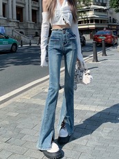 ローエッジ ハイウエスト スリット ジーンズ レディース 夏デザイン センス ニッチ マイクロ フレア パンツ 小さなフロアモップ パンツ ハイウェスト レッド サマー 夏物 bstraw22368860657 | beaute25