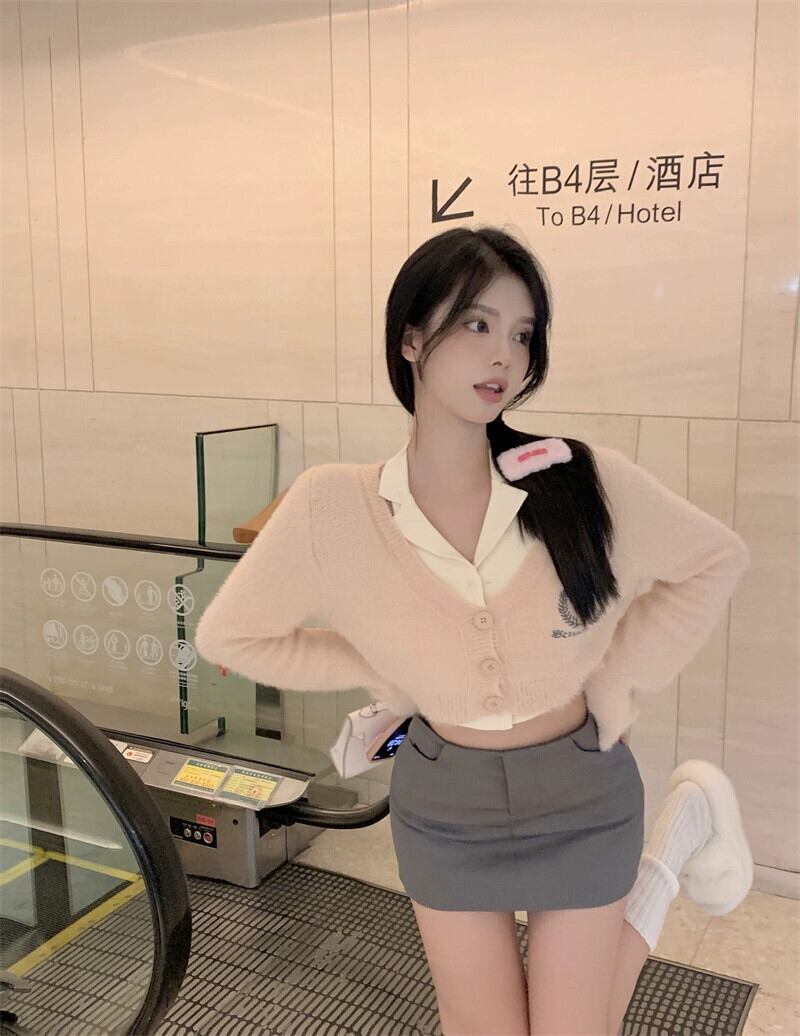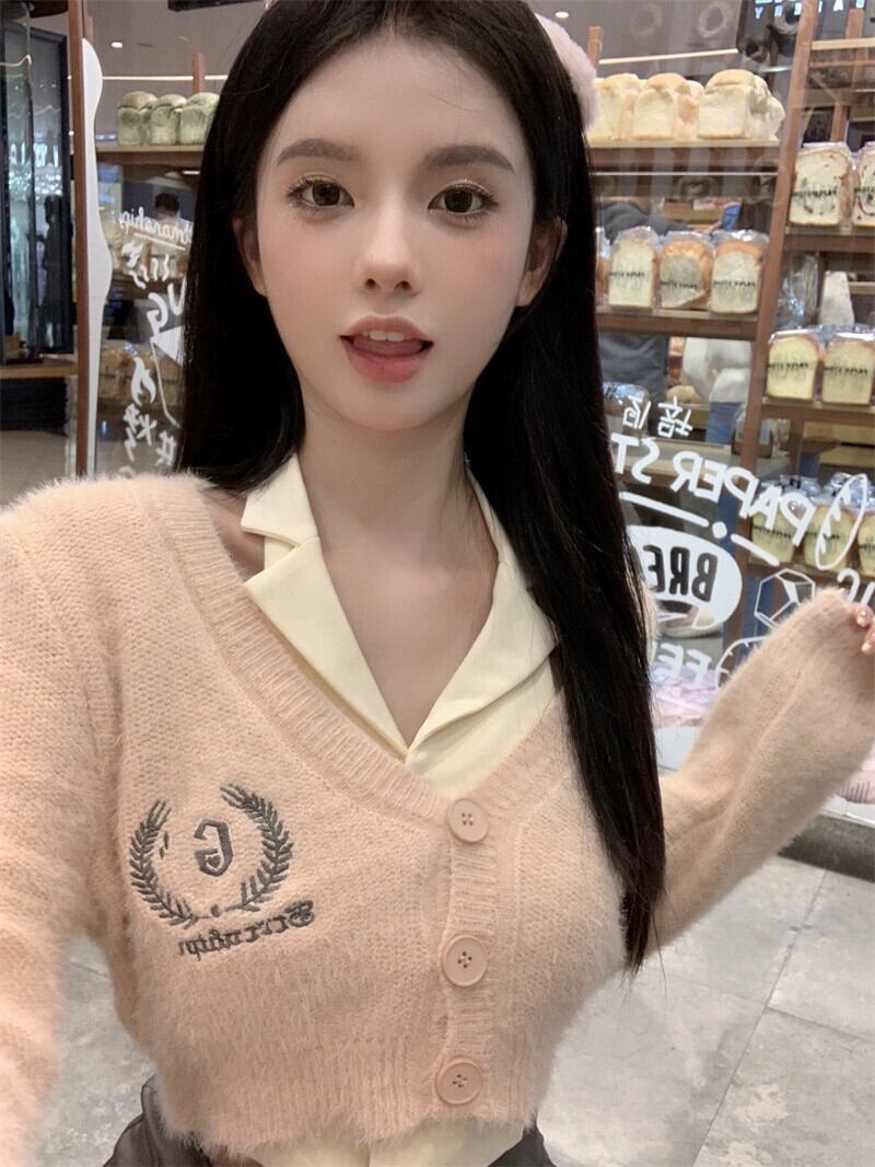 ピンクのソフトワックス状長袖ニットカーディガン女性の春の純粋な欲望カレッジスタイルスリムスリムショートセータートップ ロング スプリング 春物 ピュア bstraw25557234752 | beaute25