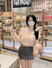 色:ピンクのカーディガン,ベスト,ダークグレーのスカート,白い靴下