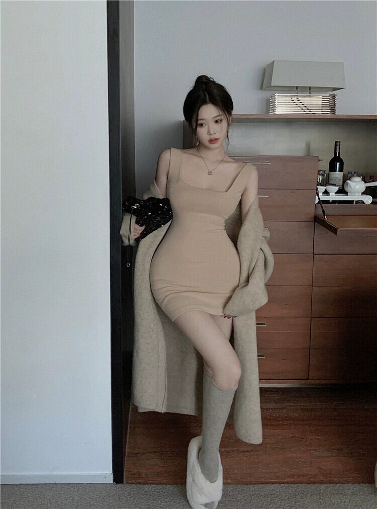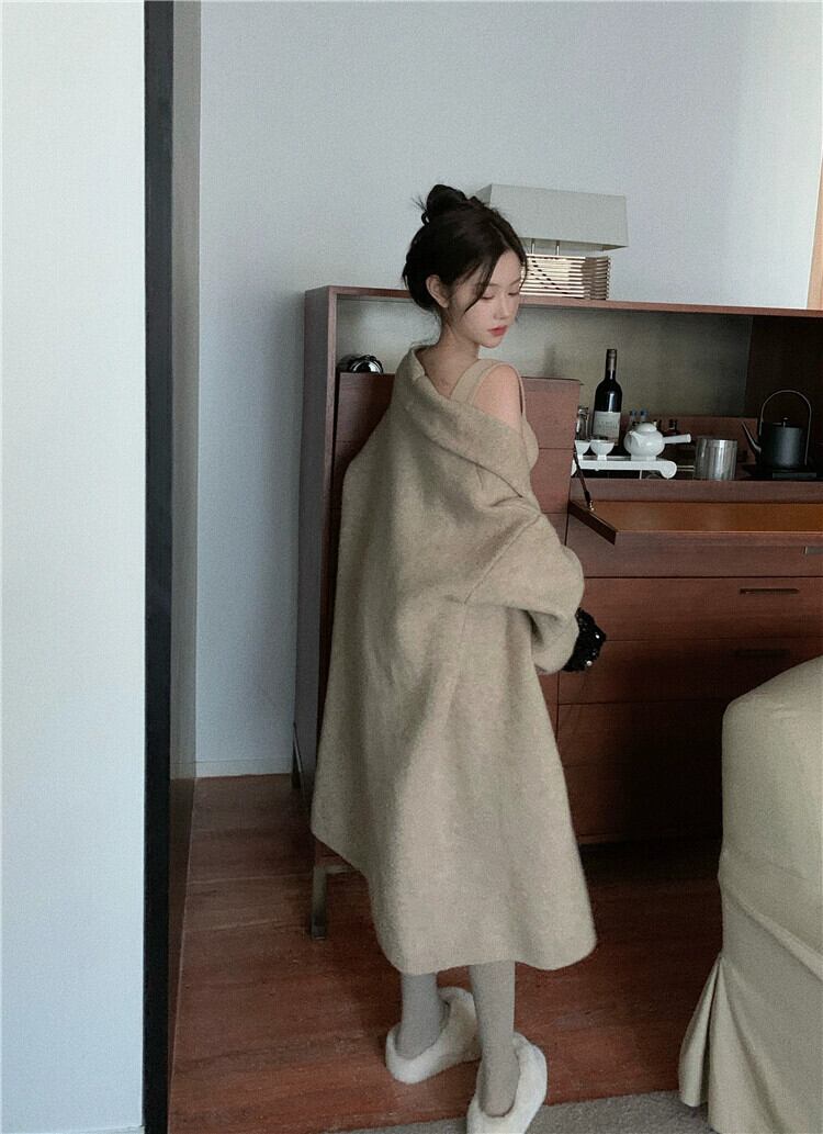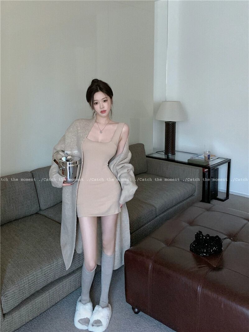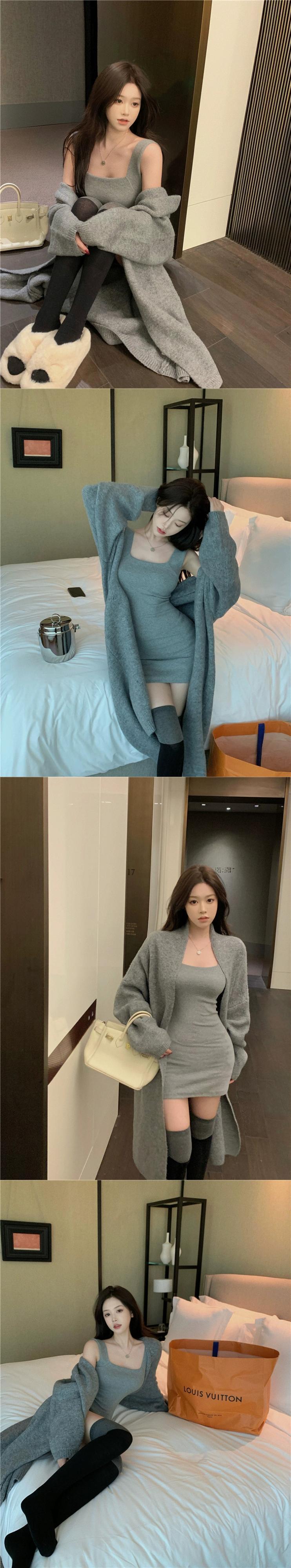 色:オートミールコート,ダークグレーコート,カーキタンクトップ,ダークグレーのタンクトップスカート
