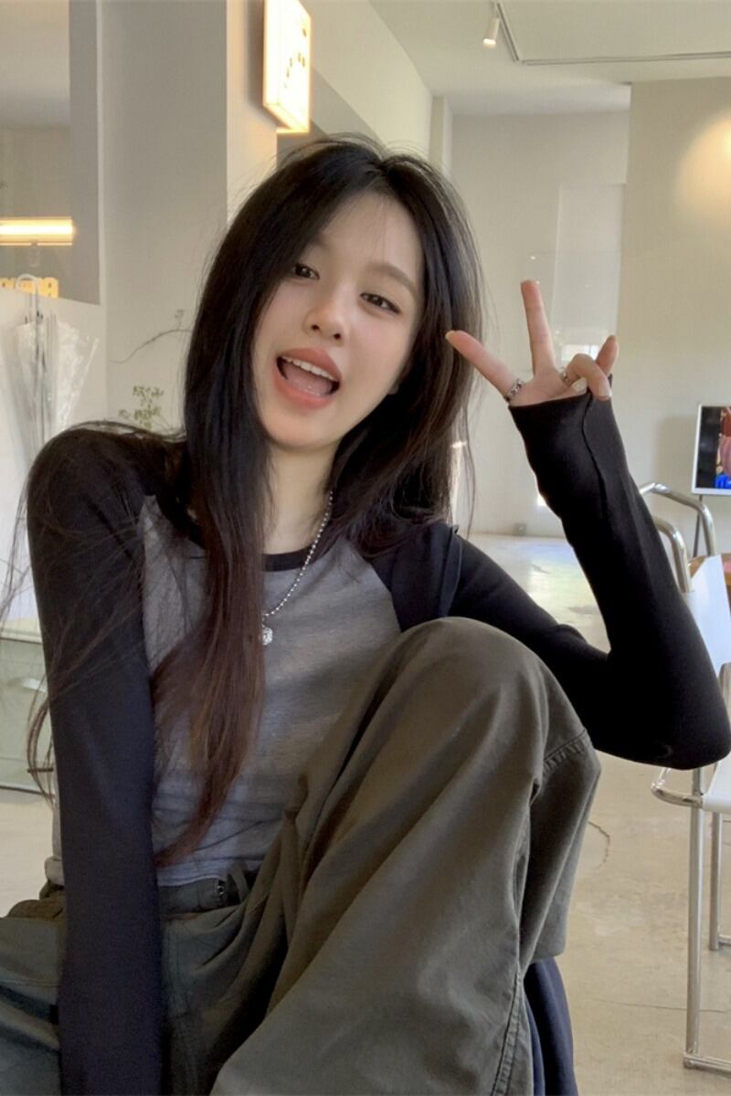 ホットスプライシング長袖 Tシャツの女性の 2023 春の新バージョンのデザインセンスラグランスリーブスリムトップボトリングシャツ ロング スプリング 春物 bstraw81556252826 | beaute25