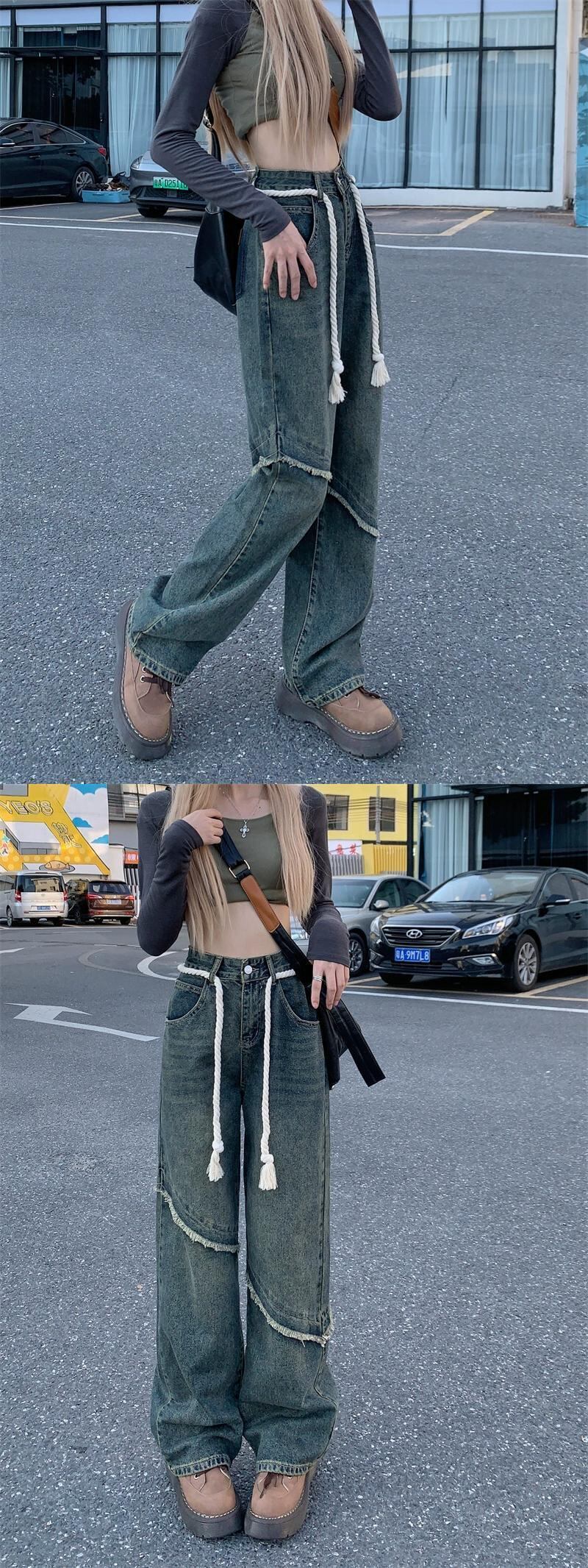ローエッジオールドレトロジーンズ女性の夏小さなルーズハイウエストストレートワイドレッグパンツモップパンツ ハイウェスト サマー 夏物 ワイドパンツ bstraw70335737724 | beaute25