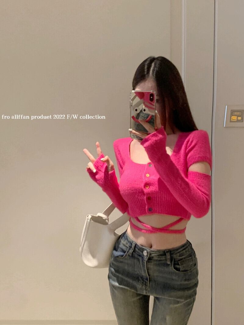 ローズレッド スクエアカラー 長袖 ニット カーディガン レディース 春 甘い タイアップ スリムフィット ショート ボトム セーター トップ ロング 大人ガーリー スウィート キュート カジュアル スプリング 春物 スクウェア bstraw26272769810 | beaute25