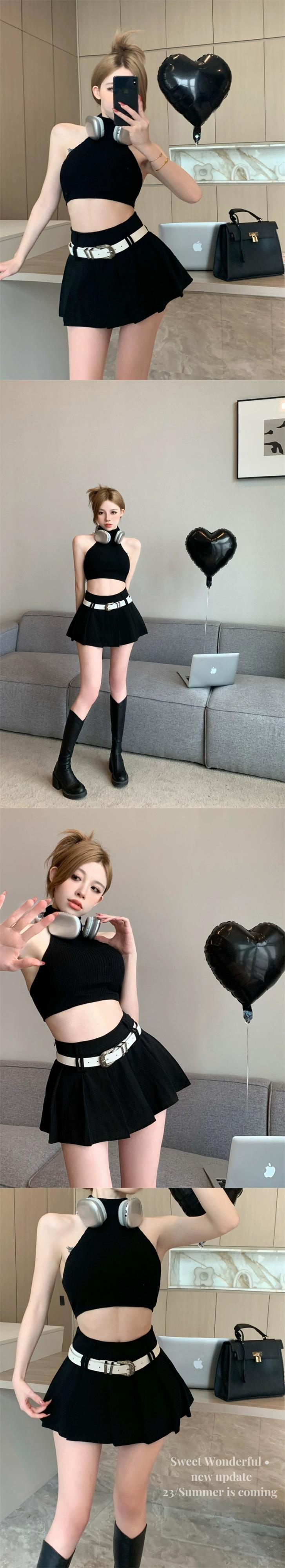黒の A ライン プリーツ スカート レディース 夏バレエ スタイル スカート 小さい背の高いウエスト スリム セクシー スカート ブラック サマー 夏物 Aライン bstraw15645717091 | beaute25