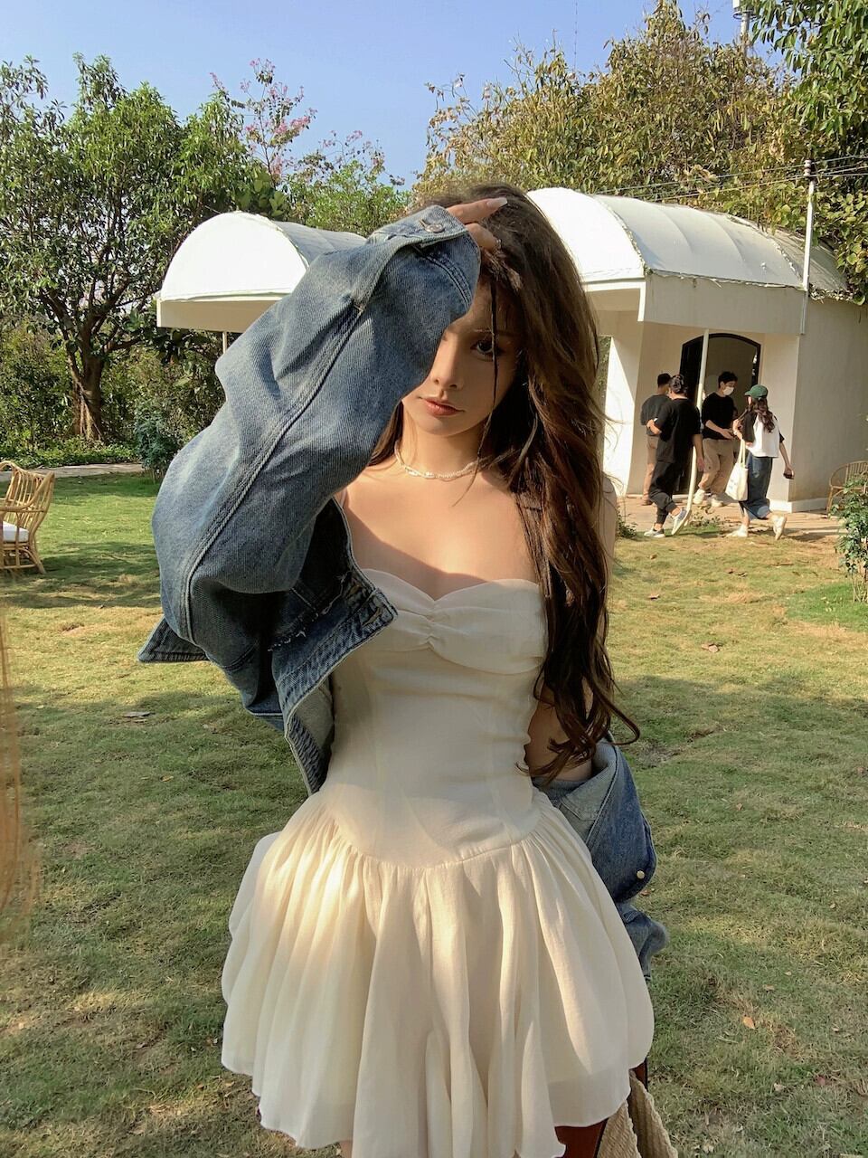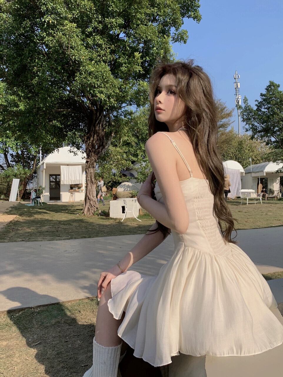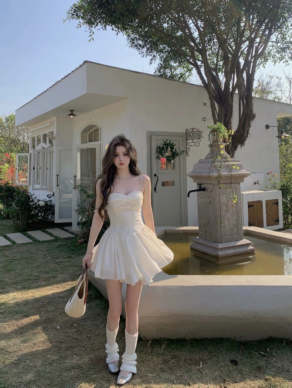 純粋な欲望のワンショルダープリーツサスペンダードレス女性の夏の白い甘いスカートセクシーなウエストプリンセススカート ホワイト 大人ガーリー スウィート キュート カジュアル サマー 夏物 bstraw59449536328 | beaute25
