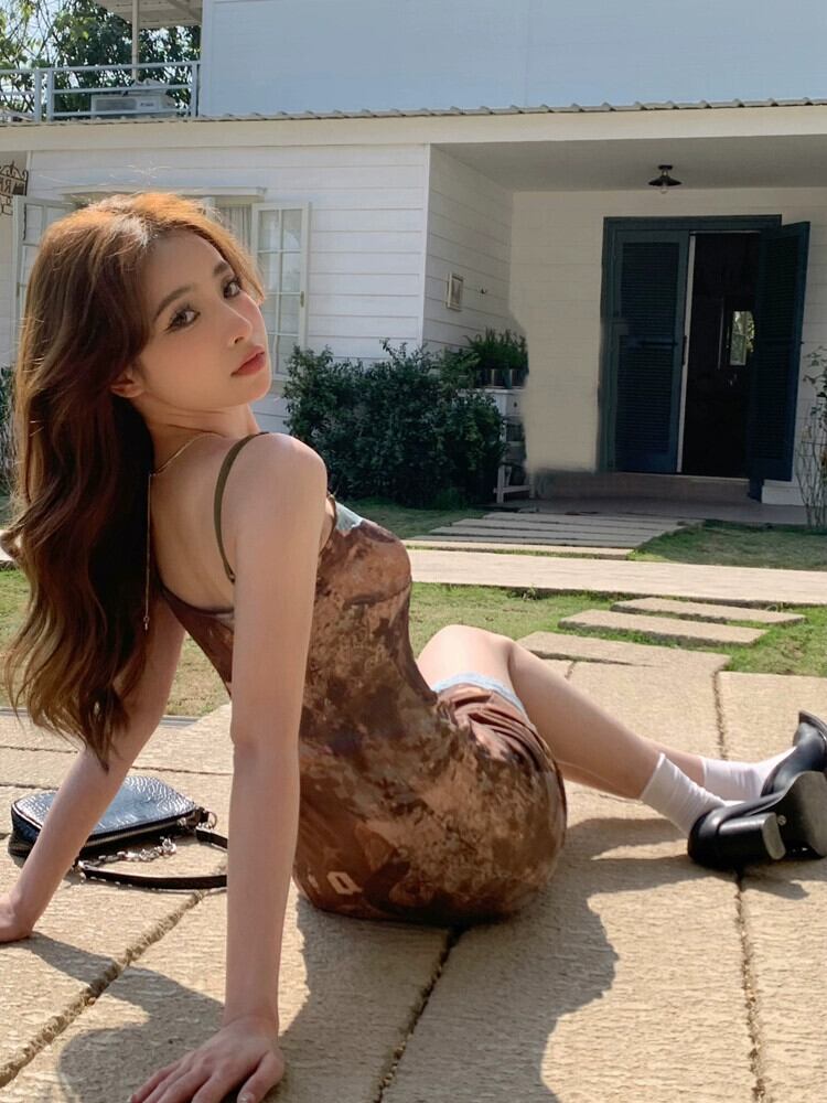 ヨーロッパとアメリカのプリントサスペンダードレス女性の夏の純粋な欲望レーススカートレトロスリムセクシーなバッグヒップスカート サマー 夏物 ピュア ヨーロピアン bstraw5354101617 | beaute25