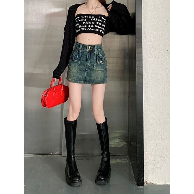 ホットガールウエストレトロデニムスカート女性夏古い A ラインスリムキュロットスカートショートスカートパッケージヒップスカート サマー 夏物 Aライン bstraw46122688576 | beaute25