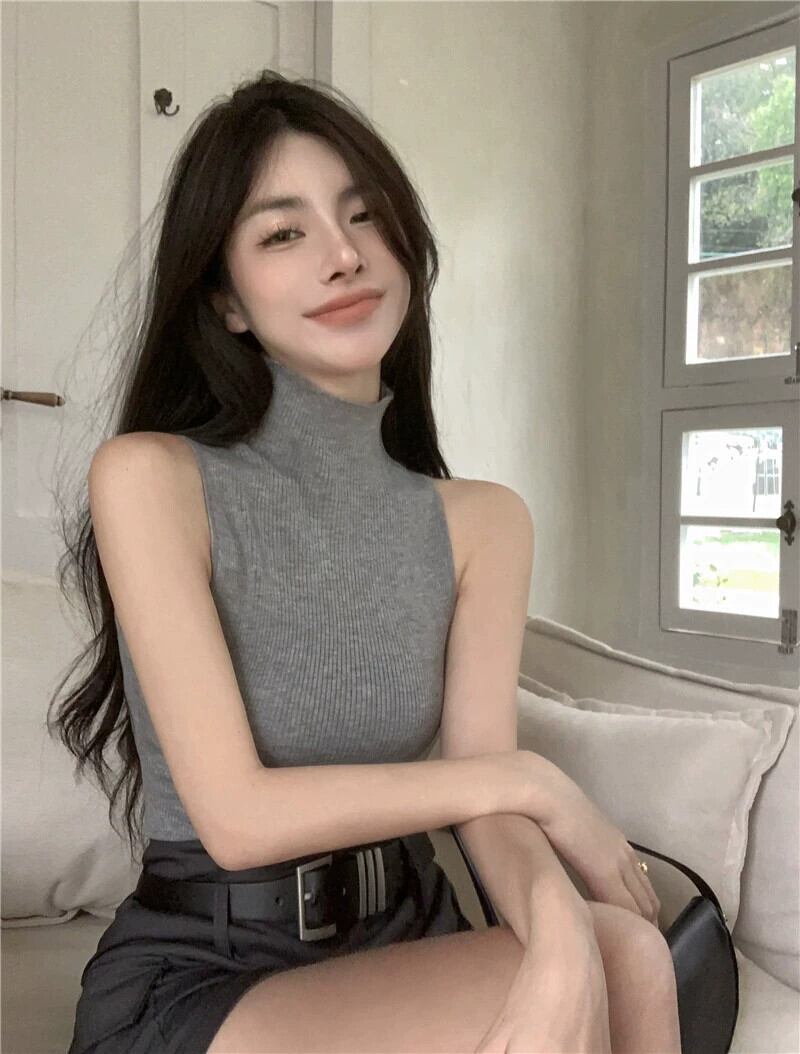 スパイスガールズ襟ニットキャミソール女性の夏のノースリーブ I 字型弾性セクシーなスリムスリムスリムボトムシャツトップス エラスティック 伸縮 サマー 夏物 bstraw31678002329 | beaute25