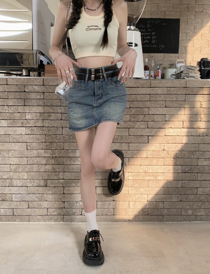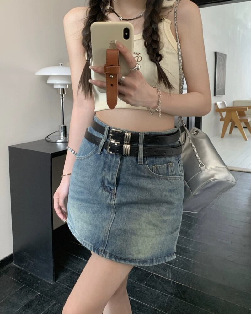 スパイスハイウエストレトロスリットデニムスカートレディース夏ダブルベルトキュロットスカート一言小さいスカート ハイウェスト サマー 夏物 ハーネス bstraw56756943439 | beaute25