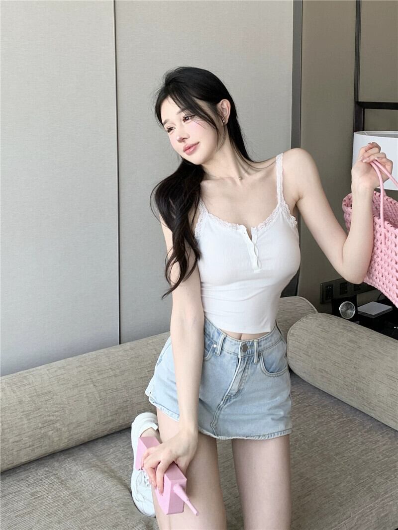 純粋な欲望スタイル白キャミソール女性の夏のレースレース自己修養スリムセクシーなインナーウェアショートトップアウターウェア ホワイト サマー 夏物 bstraw21698304841 | beaute25