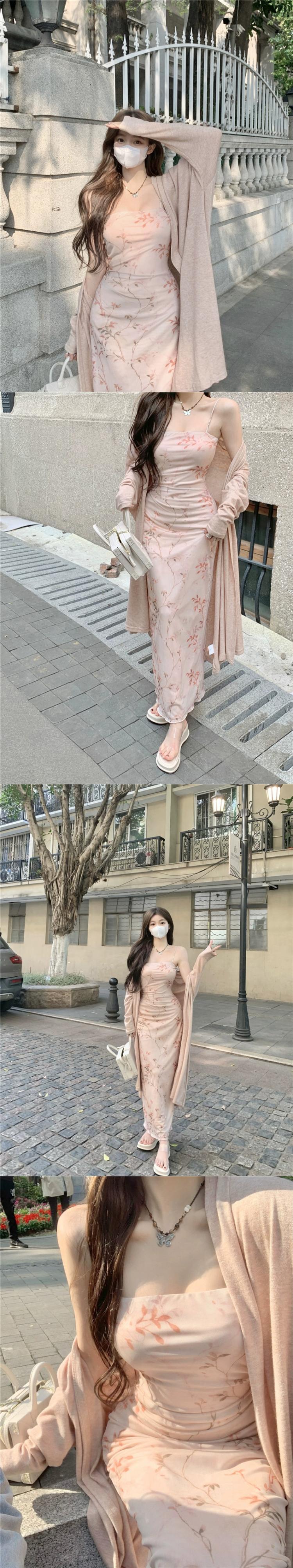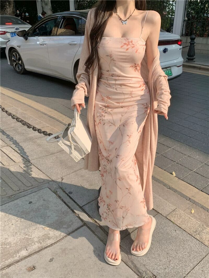 色:アプリコットピンクのドレス,アプリコットピンクカーディガン