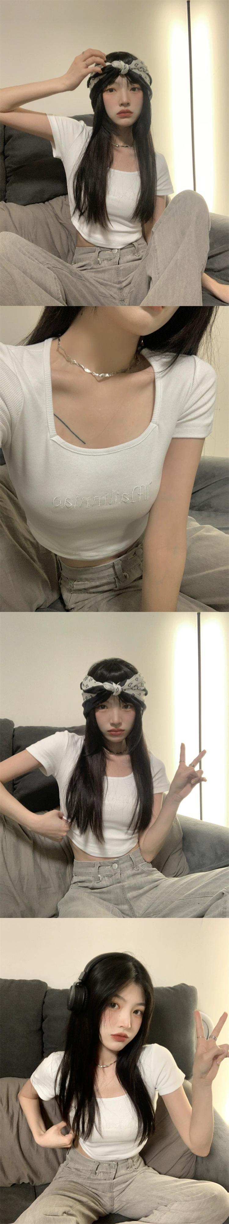 アメリカンスタイル Tシャツ レディース デザインセンス ニッチ 夏 へそハイウエスト ショートレター刺繍 タイト半袖トップ ハイウェスト サマー 夏物 bstraw4163016403 | beaute25