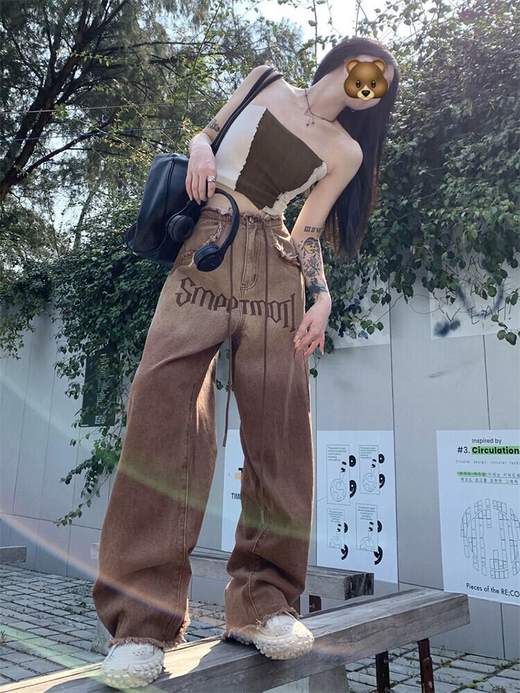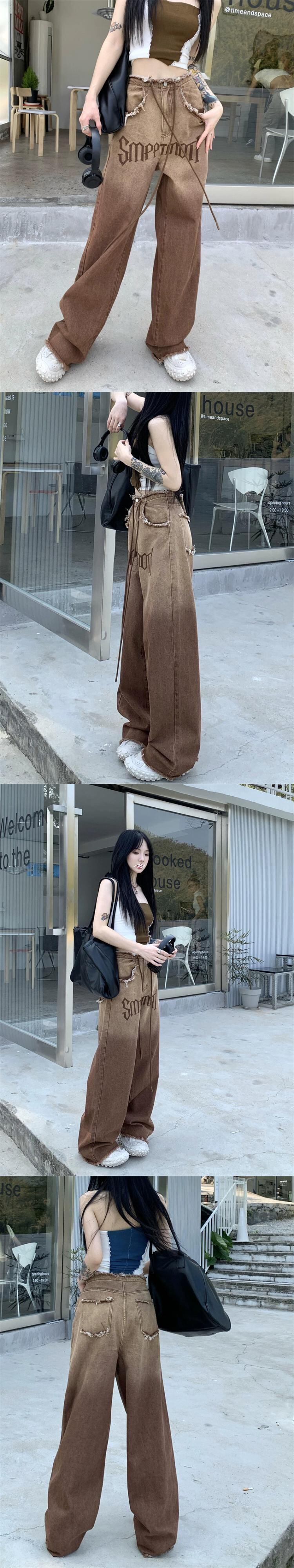 アメリカンレトログラデーションカラー巾着ストレートジーンズレディース夏イン潮生ハイウエストワイドレッグパンツズボン ハイウェスト サマー 夏物 ワイドパンツ bstraw40497539548 | beaute25