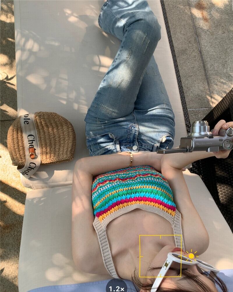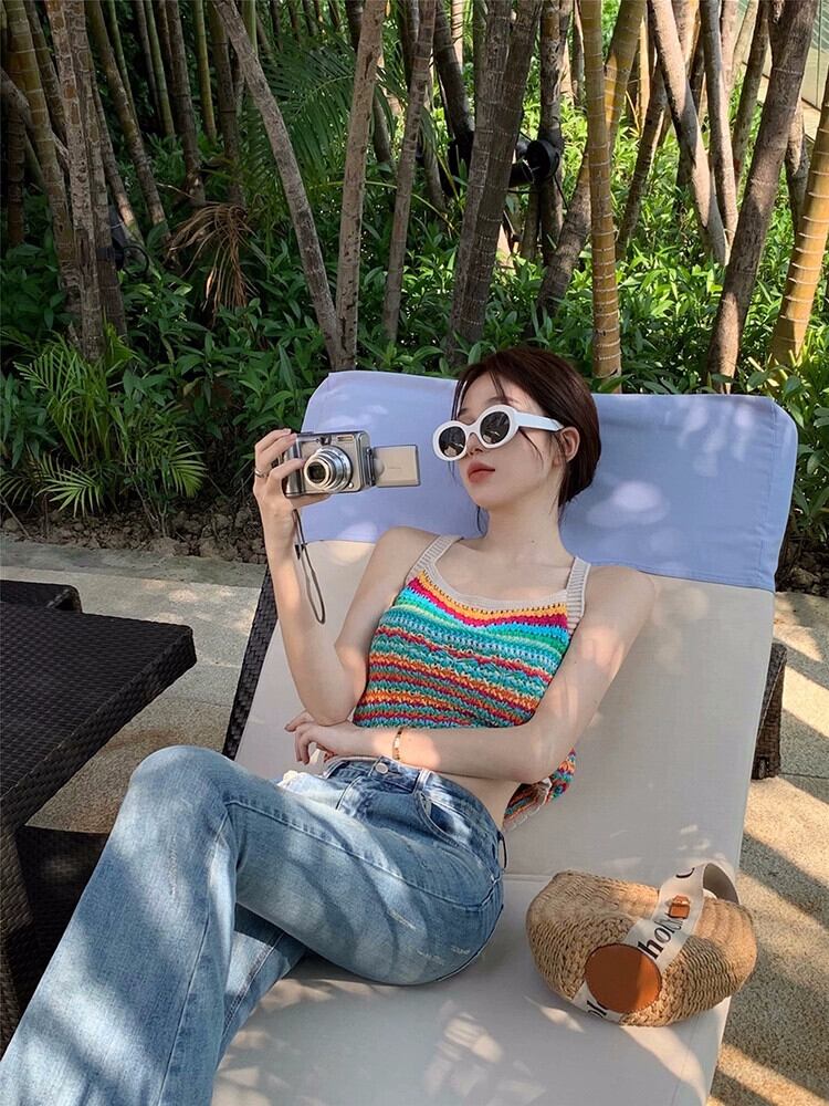 カラーストライプニットキャミソール女性の夏のデザインセンスシックで甘いセクシーなショートアウタートップ 大人ガーリー スウィート キュート カジュアル サマー 夏物 bstraw21108315579 | beaute25