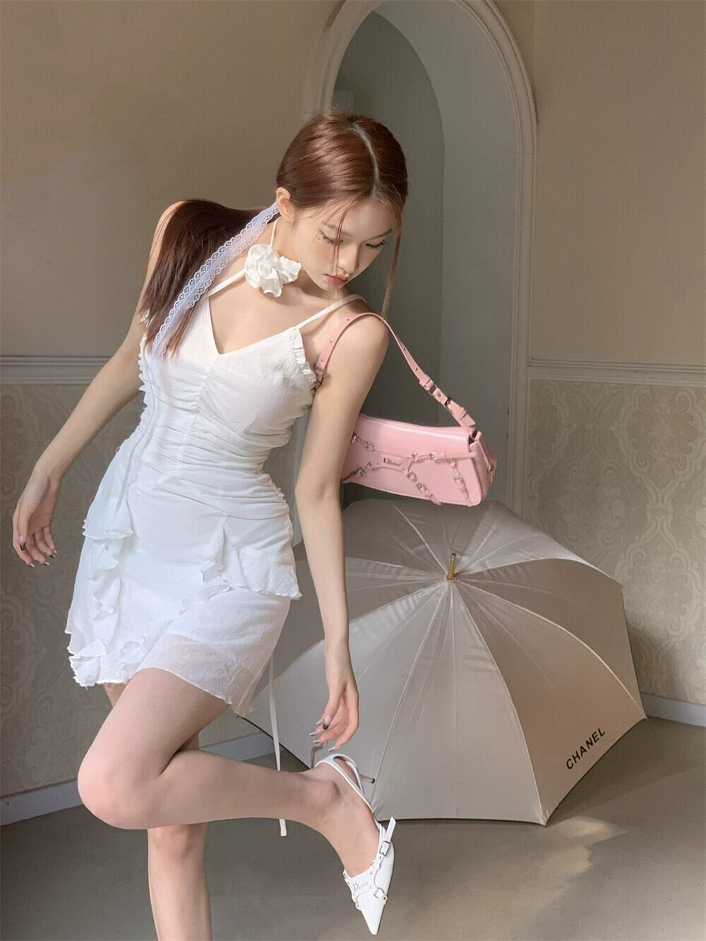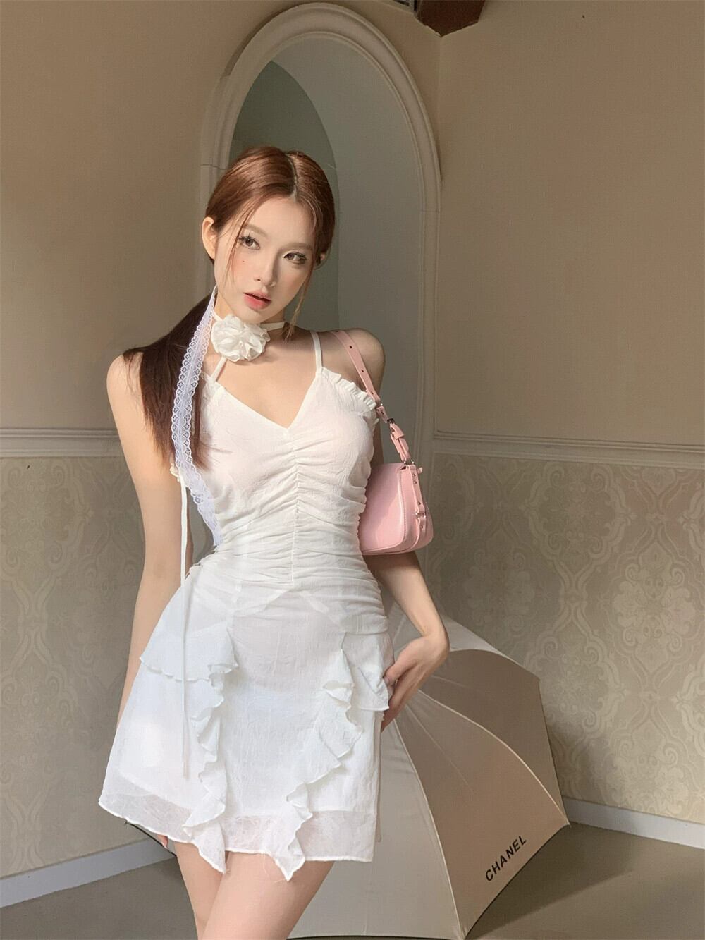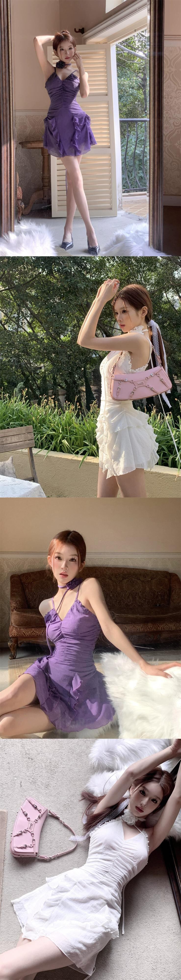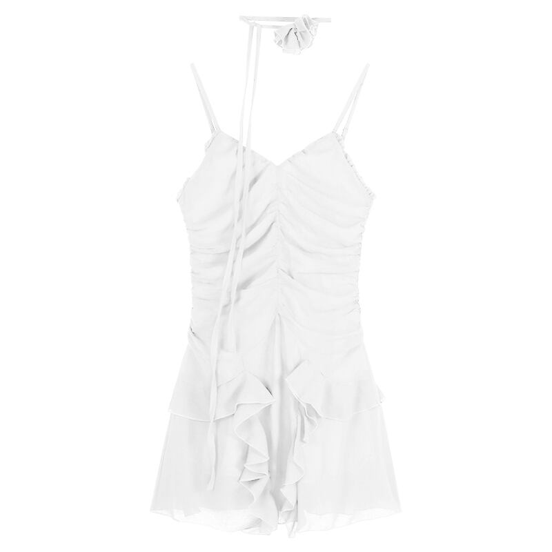 純粋な欲望風白フリルサスペンダードレス女性の夏の 2023 新しい v ネックスカートプリーツウエストスカート ホワイト サマー 夏物 Vネック bstraw94737265450 | beaute25