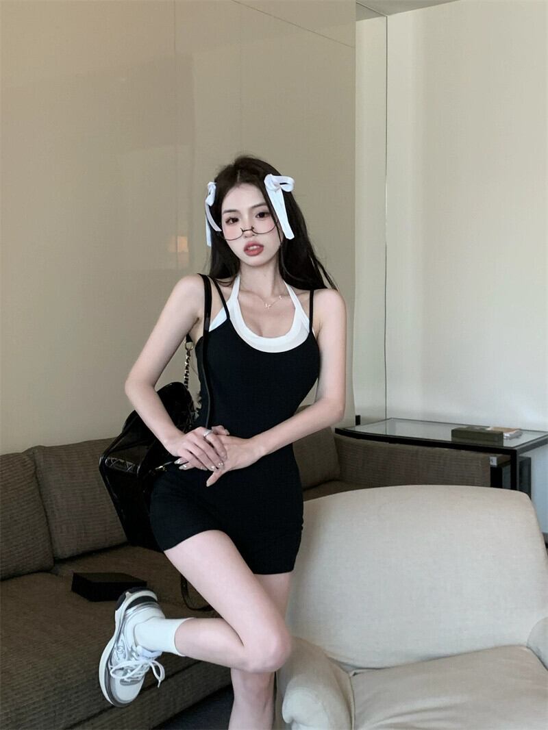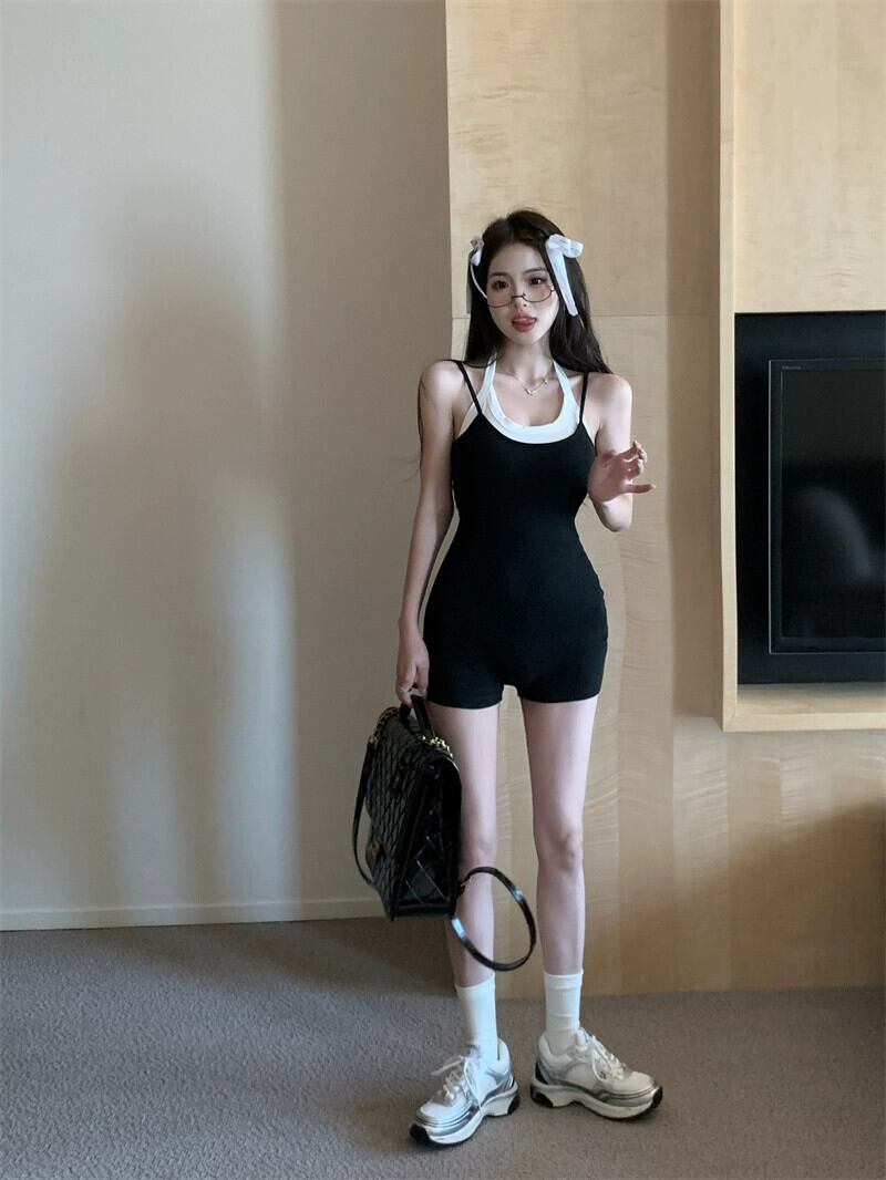 偽二枚サスペンダーワンピースカジュアルパンツ女性の夏のウエストハイウエスト自己修養スリムと小さなワイドレッグパンツ ハイウェスト サマー 夏物 bstraw44519799670 | beaute25