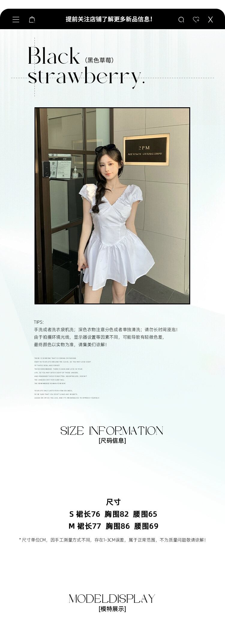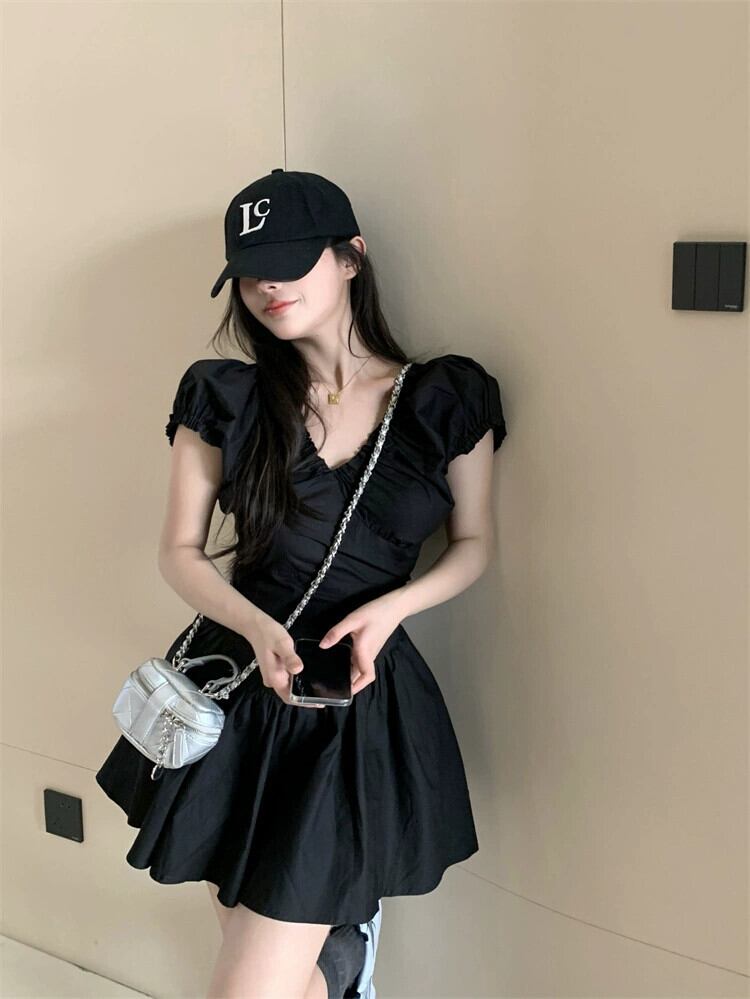 フレンチ v ネック半袖ドレスの女性の夏の 2023 新しいスカート気質パフスリーブウエスト痩身 a ラインスカート サマー 夏物 Vネック Aライン bstraw95735009957 | beaute25