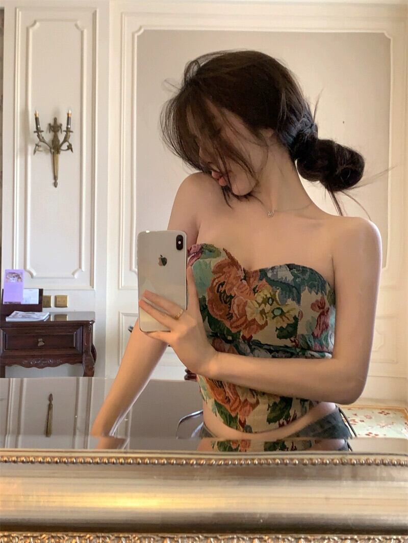 ホットフローラルレトロチューブトップベスト女性の夏の純粋な欲望胸パッド油絵背中の開いたセクシーなトップアウターラップ胸 サマー 夏物 花柄 ピュア bstraw13702958562 | beaute25