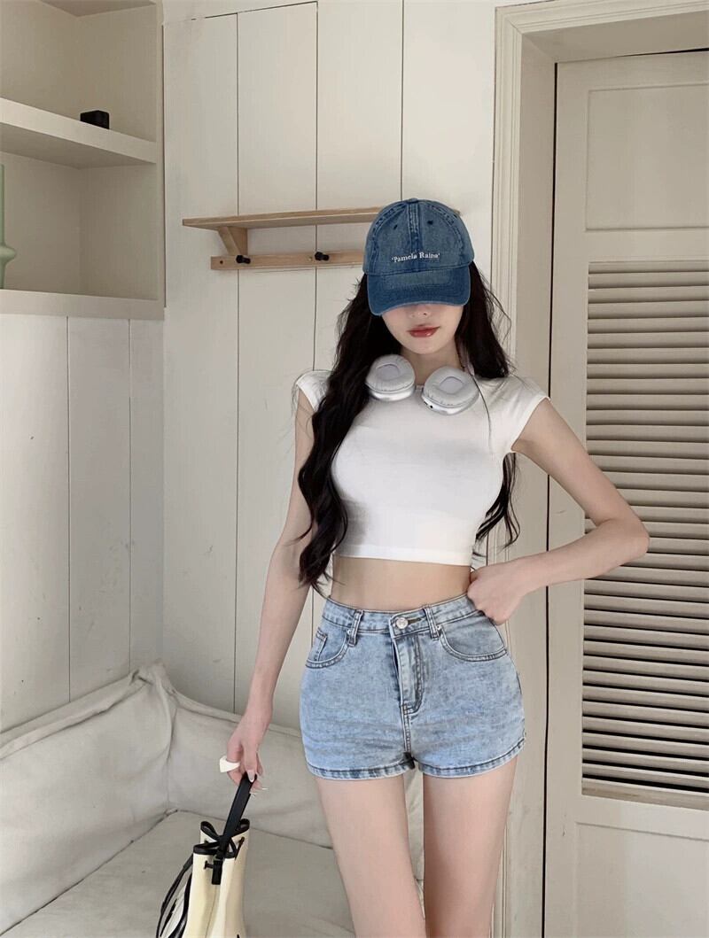 ホットハイウエストレトロデニムショートパンツ女性の夏の2023新しいパンツスリット小さなストレートワイドレッグパンツ ハイウェスト サマー 夏物 ショーツ ブルマー ワイドパンツ bstraw94043267305 | beaute25